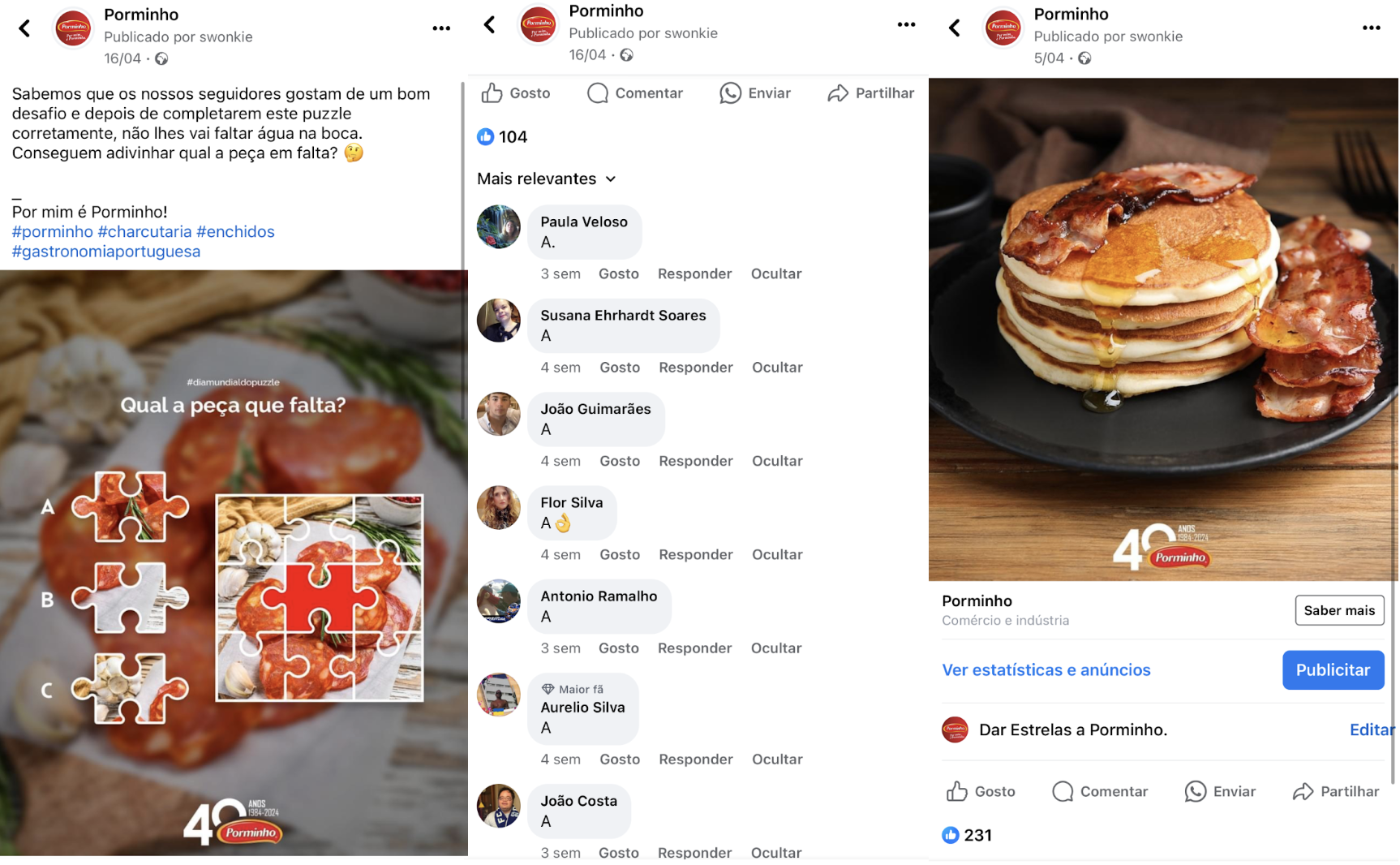 Estas ações aumentaram a presença da Porminho nas redes sociais e fortaleceram a relação com a comunidade, proporcionando momentos de interação. A título de exemplo, neste passatempo do “Cabaz de Advento da Porminho”, a marca obteve 5775 participações.
