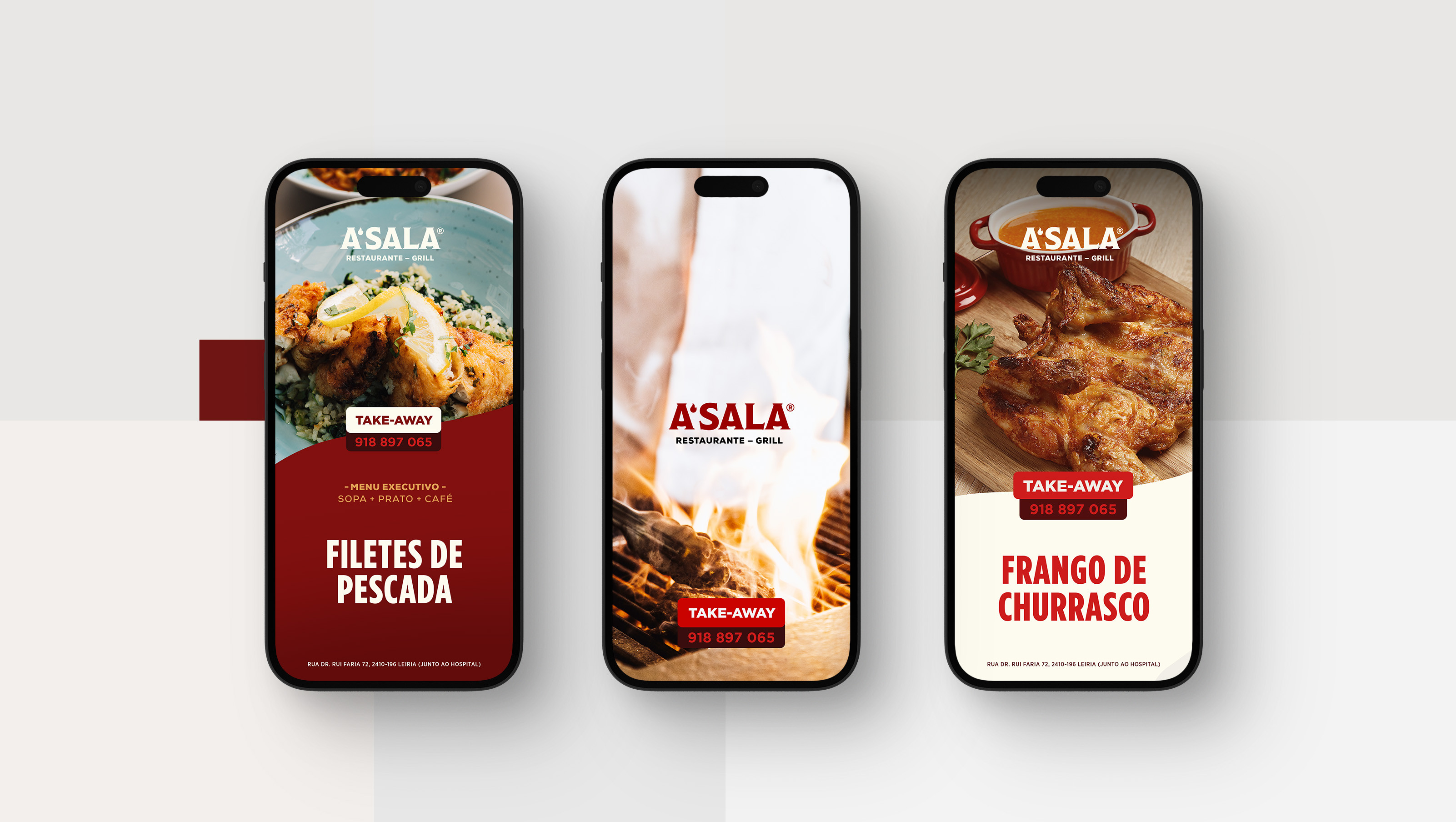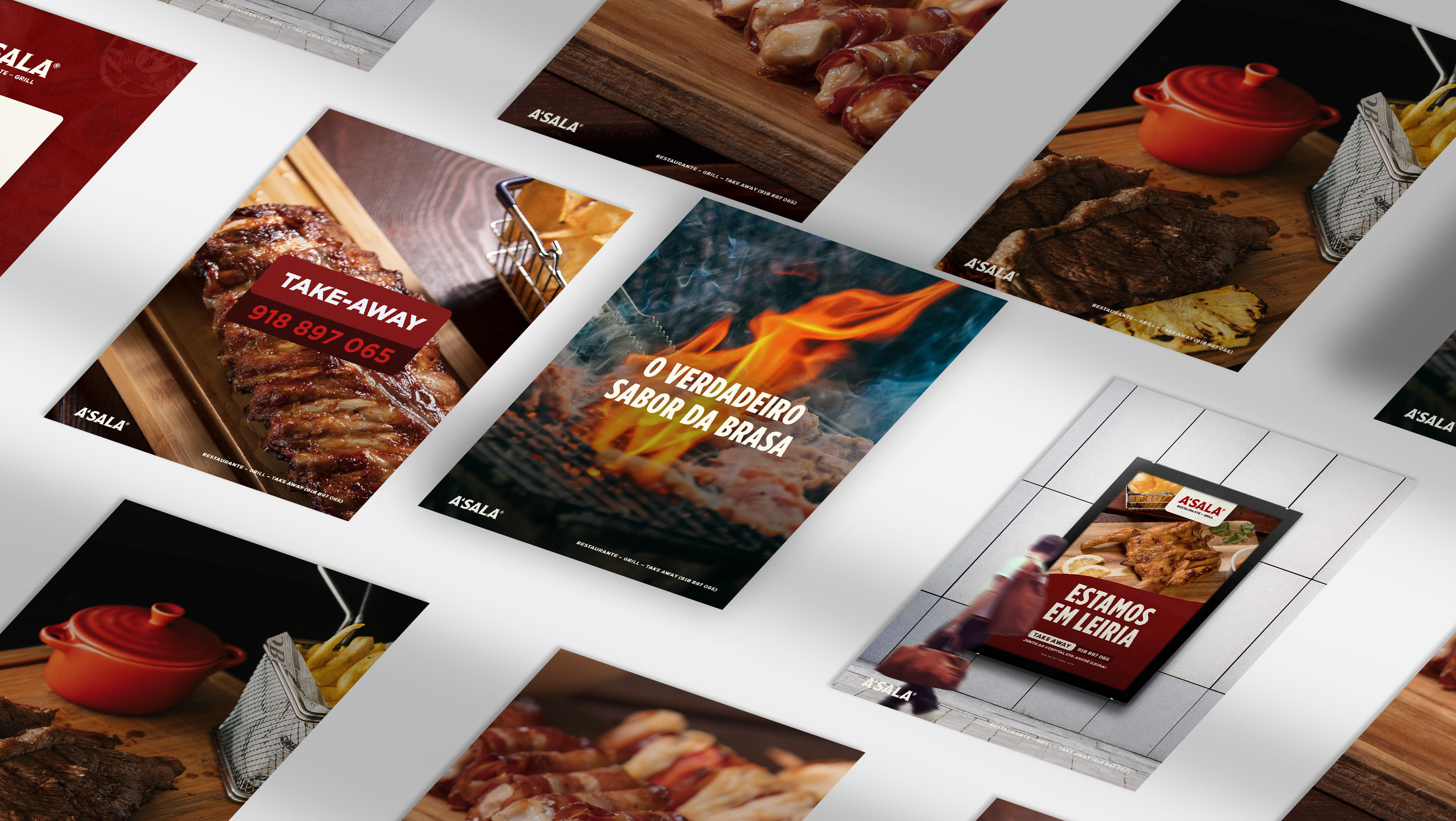 A’Sala procurou a Drible para encontrar o equilíbrio entre a comunicação de uma churrasqueira em modo almoços de negócio. Como comunicar à boa maneira portuguesa boas carnes grelhadas, com possibilidade de take away, de forma arrojada, clean e luxuosa?