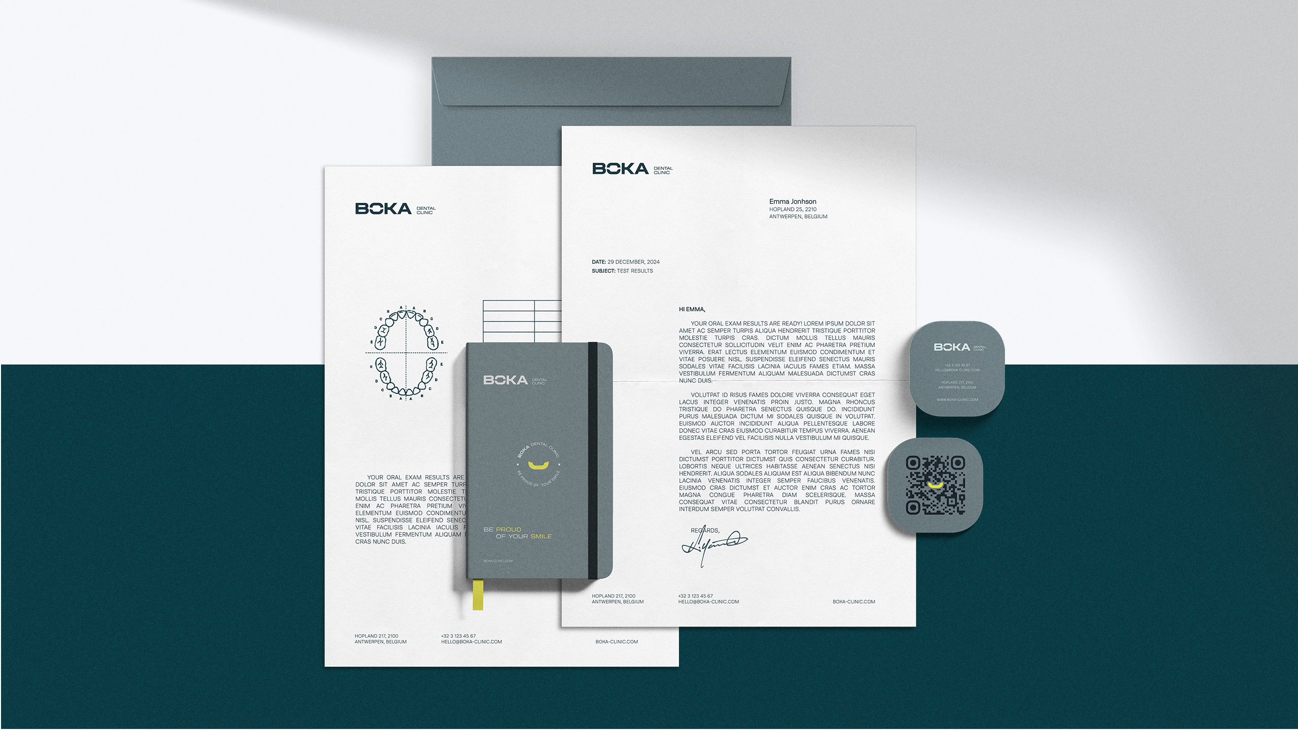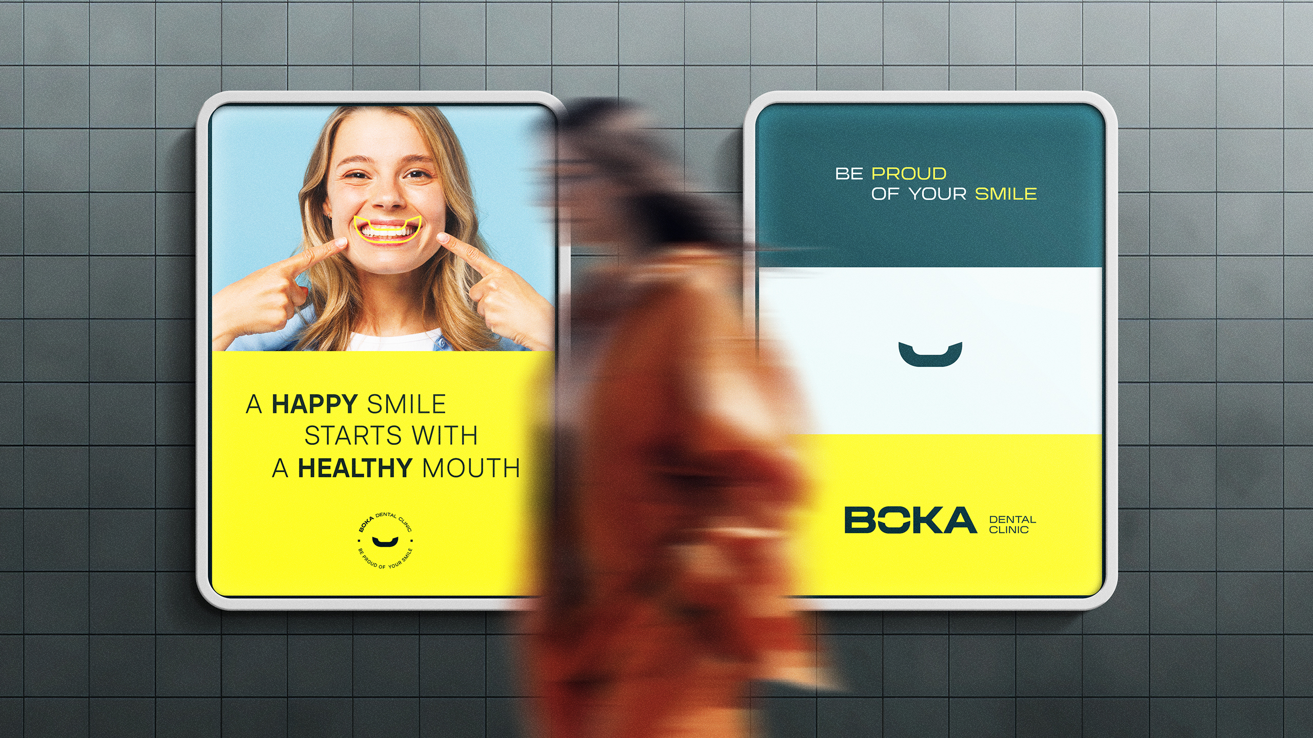 A cidade de Antuérpia, na Bélgica, é um mosaico multicultural onde se cruzam línguas, estilos de vida e contextos sociais distintos. Para uma clínica de medicina dentária como a BOKA, o desafio era destacar-se num meio altamente competitivo e visualmente homogéneo, onde os tons de azul e verde, e logótipos previsíveis, já deixavam de causar impacto.