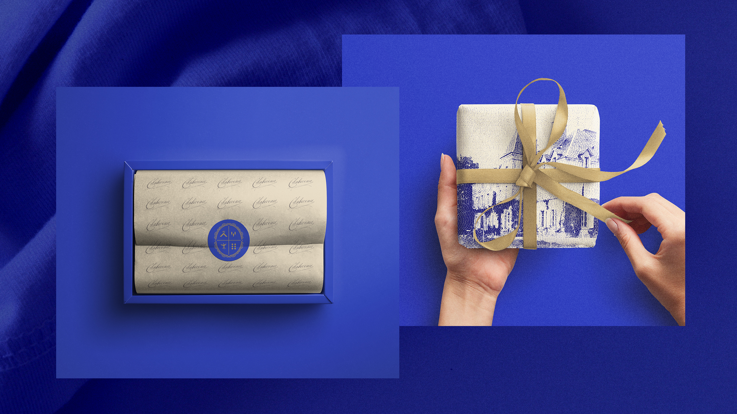 Visualmente, a identidade debruça-se sobre a estética vitoriana e da opulência dos padrões clássicos, traduzida numa linguagem contemporânea e altamente posicionada. A paleta cromática, azul royal, dourado velho, marfim, bege e cinza-pedra, comunica profundidade, elegância e reforça o carácter exclusivo da marca. Elementos como as ilustrações detalhadas e o uso de brasões simbólicos remetem diretamente para o universo da nobreza e do savoir-faire europeu, evocando excelência, tradição e requinte.