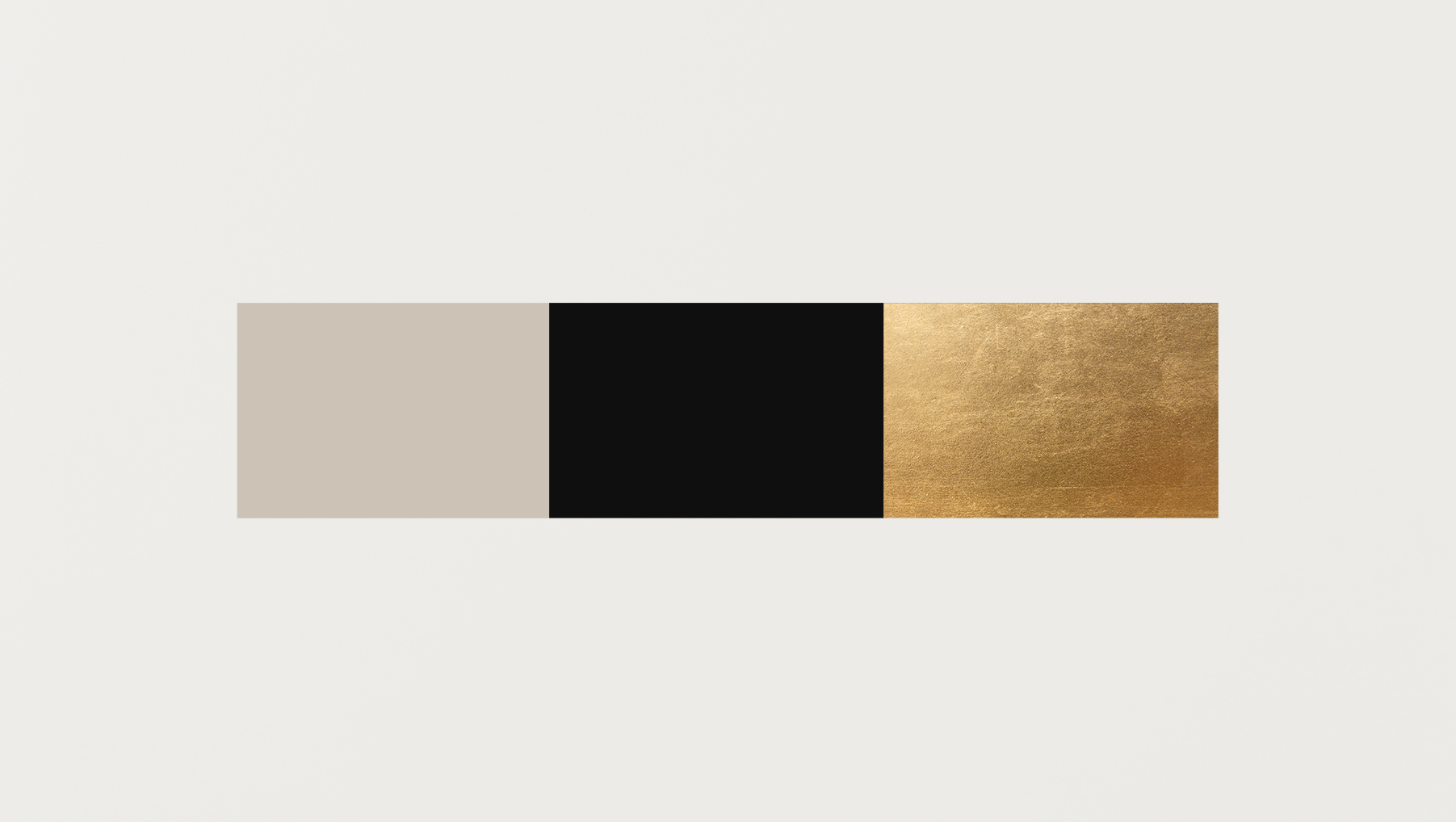 Nos suportes de comunicação, focamo-nos essencialmente nos tons neutros, como o preto, o branco e o bege e, em alguns apontamentos, destaca-se o dourado - o toque perfeito para transmitir a elegância da marca.
