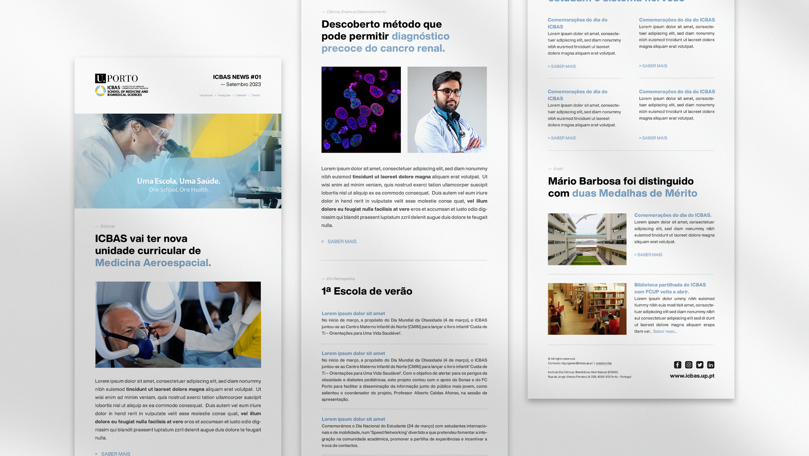 O ICBAS enfrentava a necessidade de revitalizar sua comunicação visual, criando conteúdos gráficos que fossem atraentes tanto para o público interno — professores e alunos — quanto para o público externo — futuros alunos e profissionais da investigação.