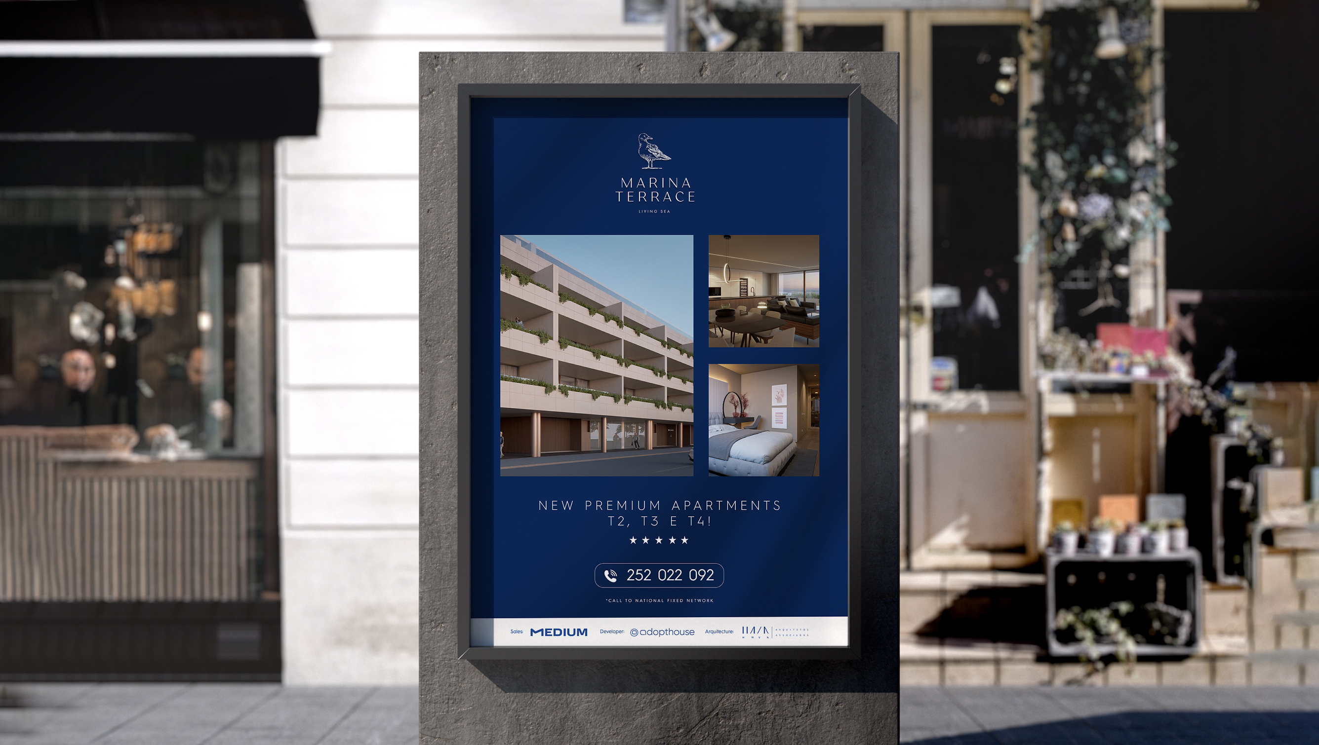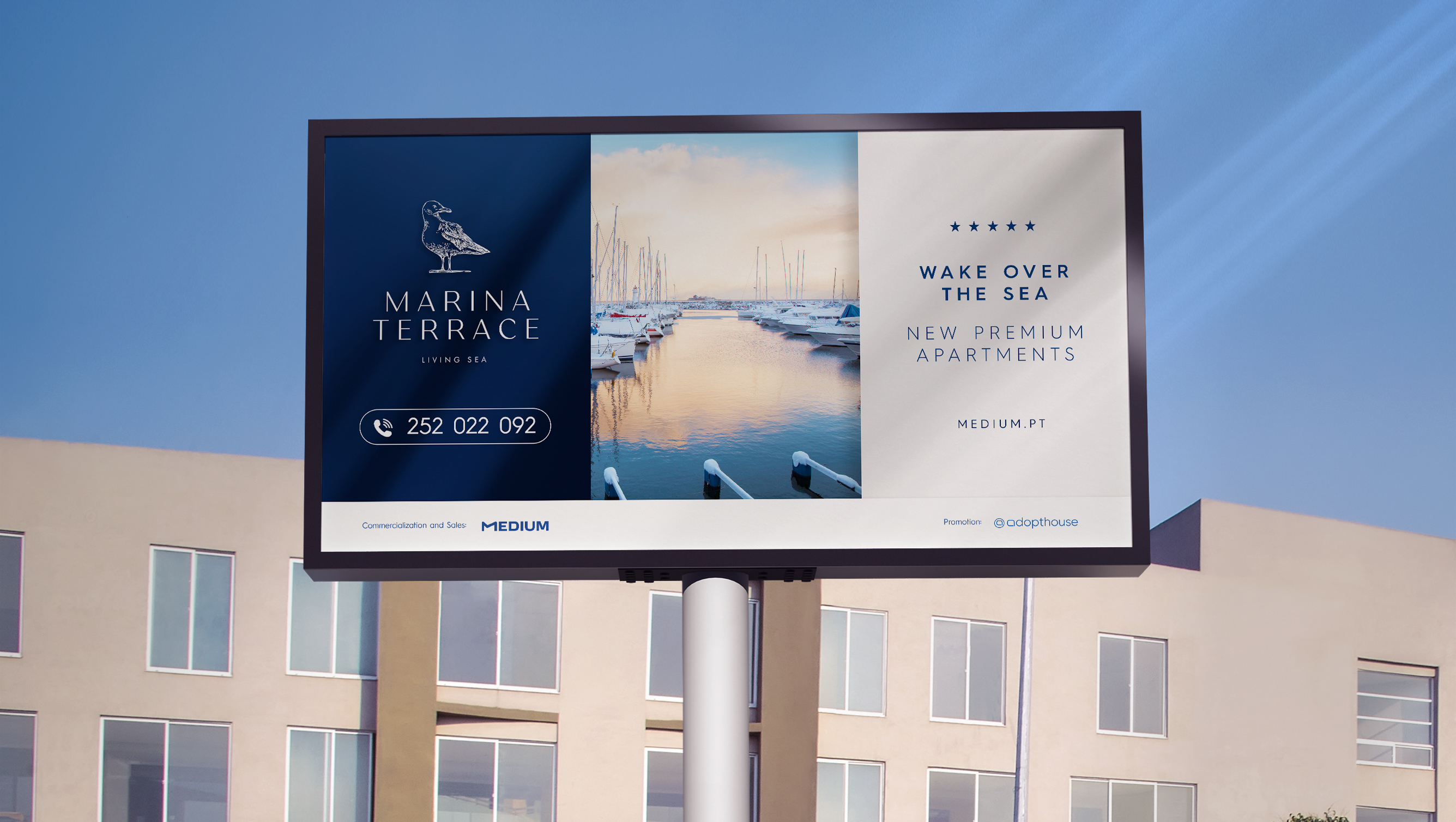 O pedido do nosso cliente passava pelo desenvolvimento da identidade visual do Marina Terrace, um empreendimento de luxo localizado na primeira linha de mar em Vila do Conde.