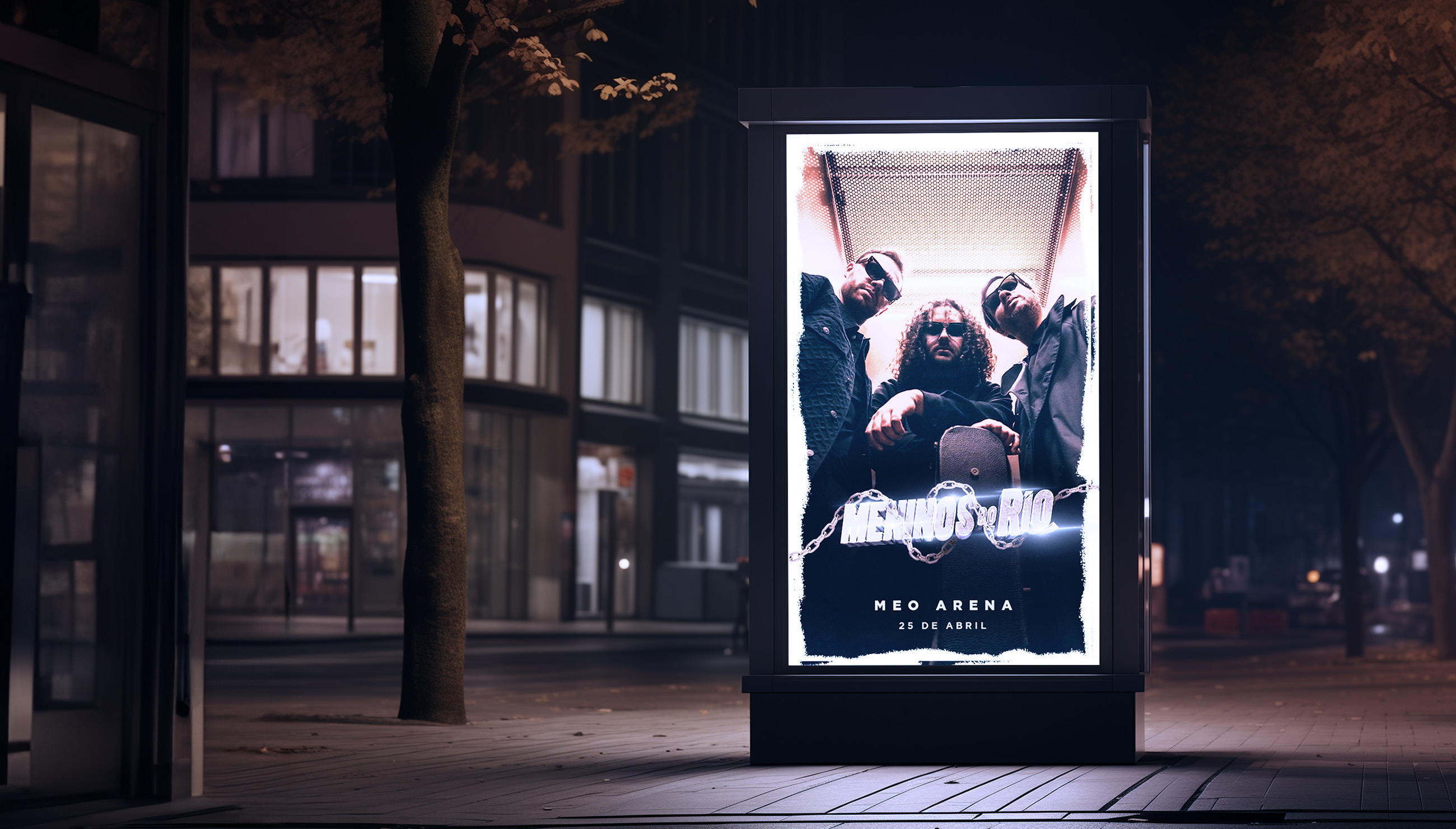 Três triângulos atrevidos e arrojados, meaning: bold. São os 3 elementos dos Meninos do Rio. O triângulo é perfeito, versátil, irreverente e disruptivo, como a música que o trio nos traz. E por isso, o bold não basta. Adicionamos um tom itálico, como a última nota, que cria o movimento da passagem de uma música para a outra.