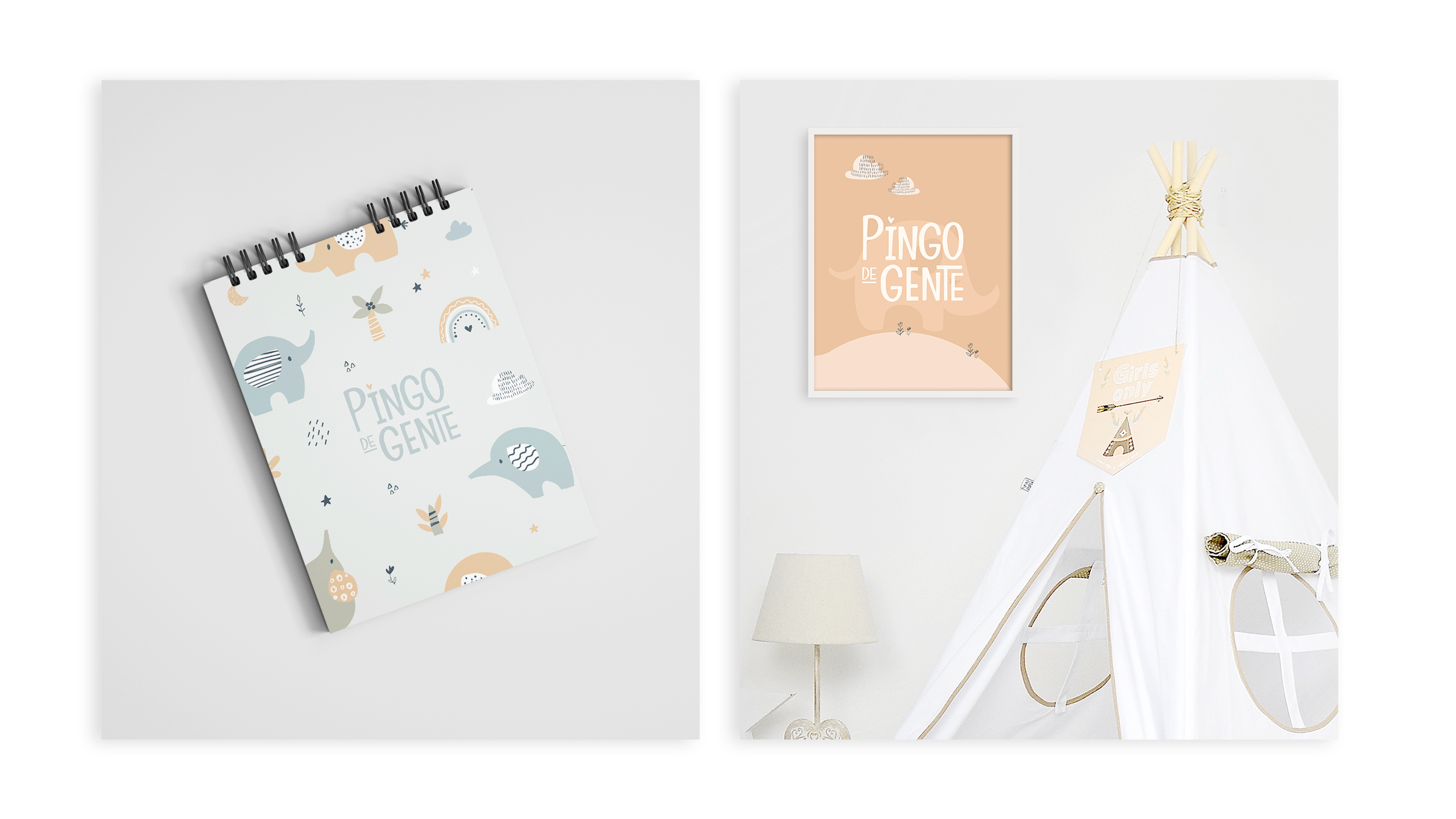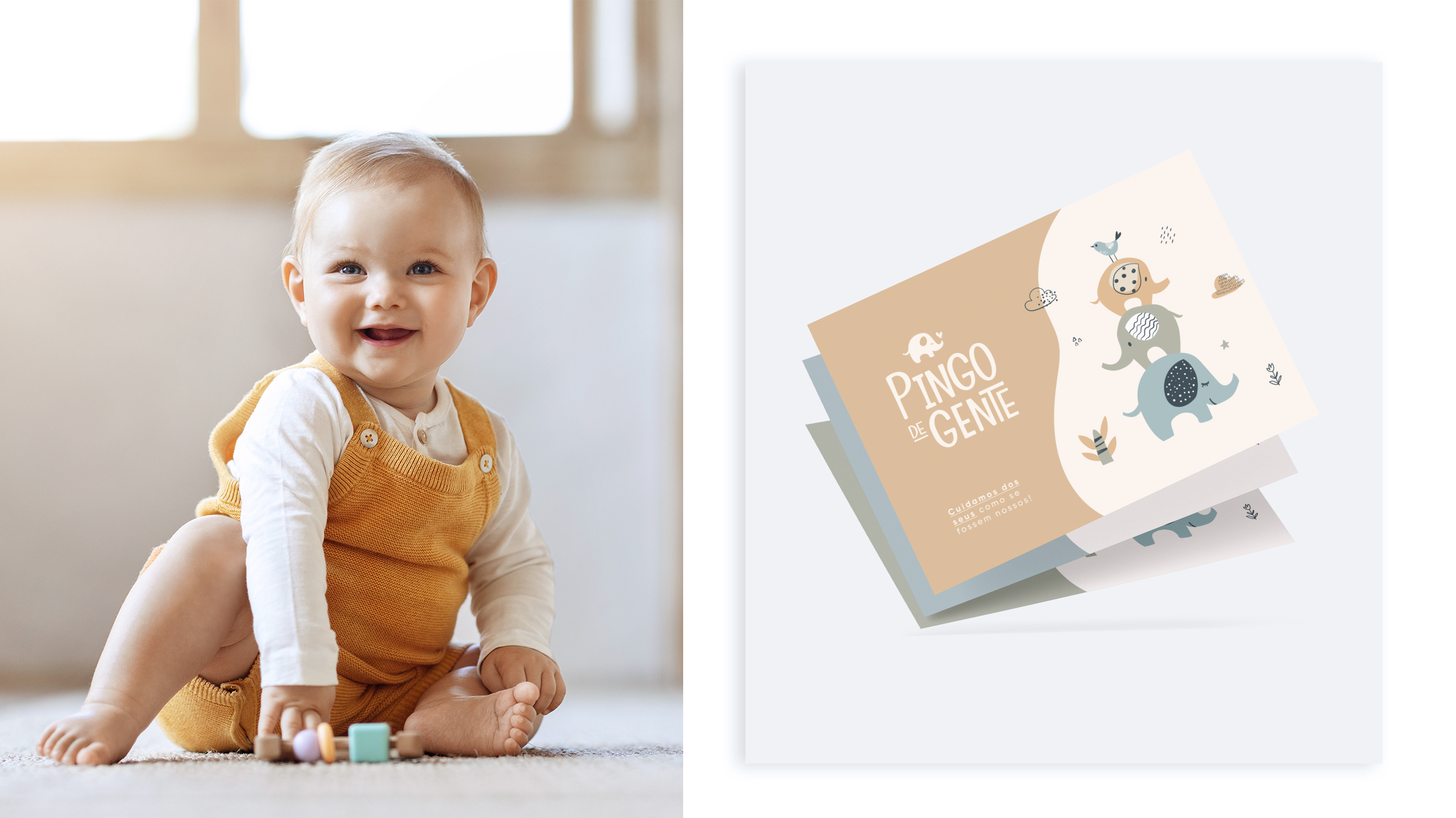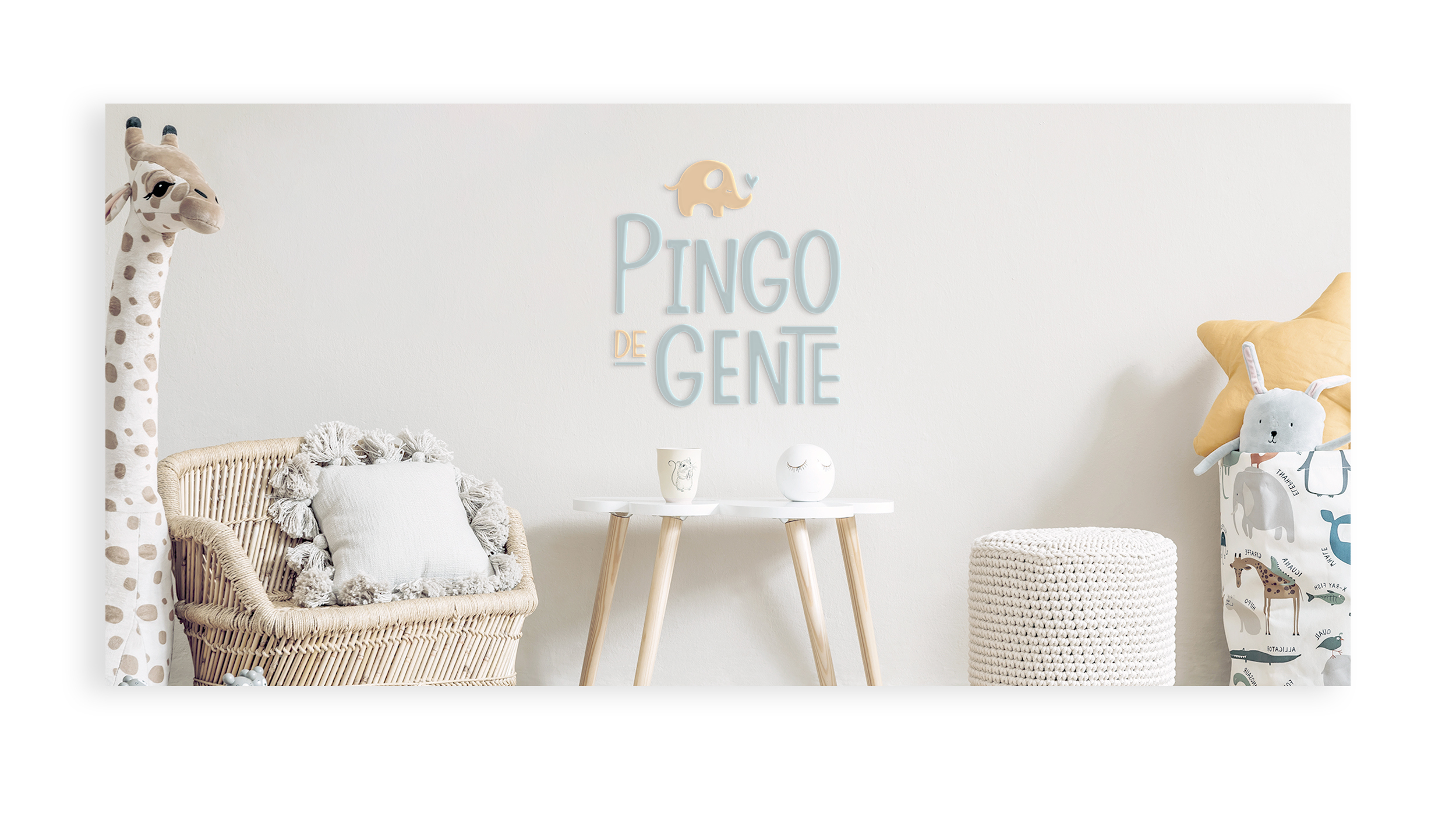 Quisemos transmitir cuidadosamente o tom ternurento e carinhoso deste serviço de Day Care Center. Por isso, criamos um logótipo composto por um elefante com um coração, que representa o amor e o cuidado que a Pingo de Gente tem pelas crianças. Além disso, elaboramos um logótipo responsivo que possui diferentes versões para se adaptar a diversos formatos e aplicações.