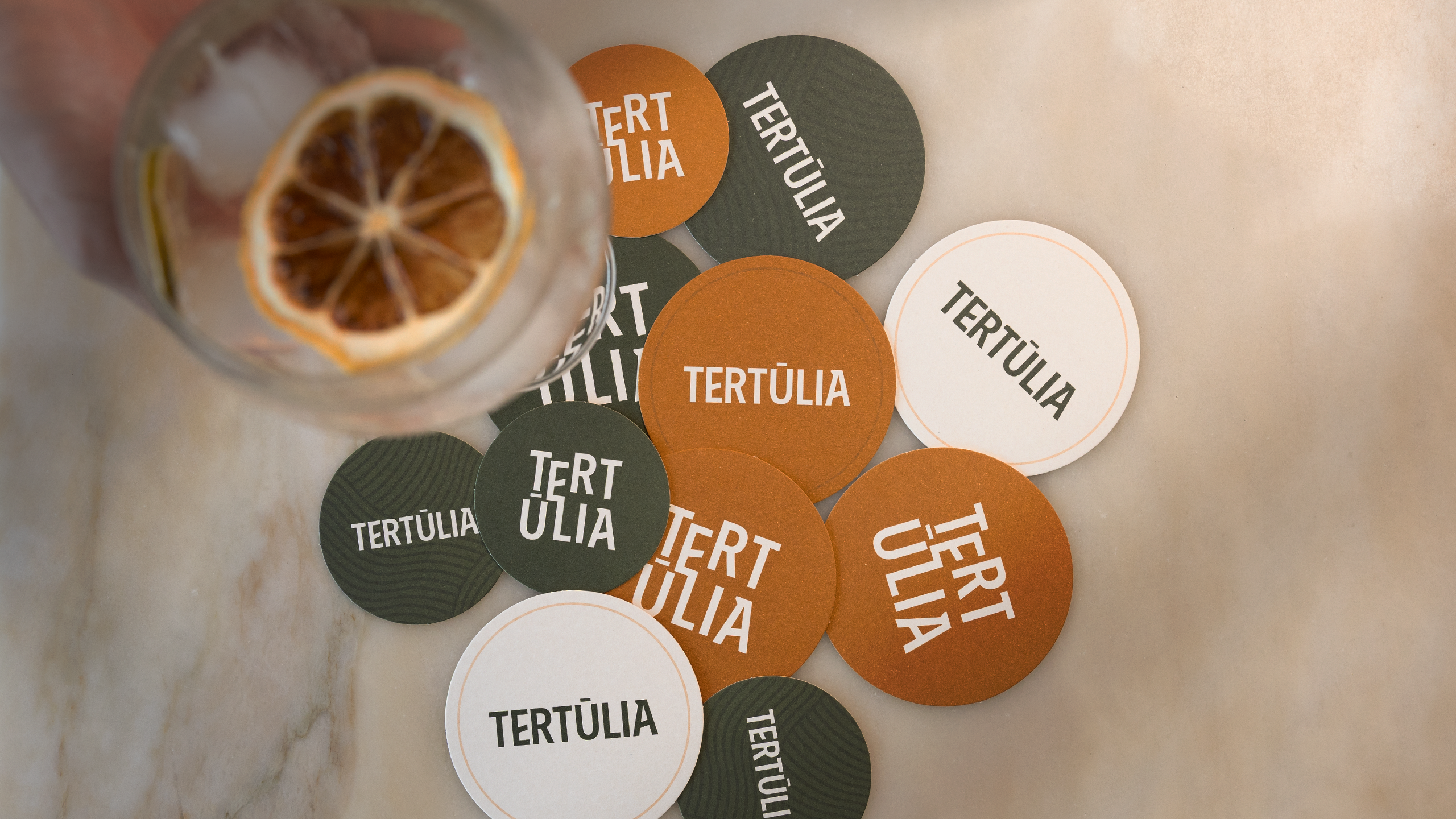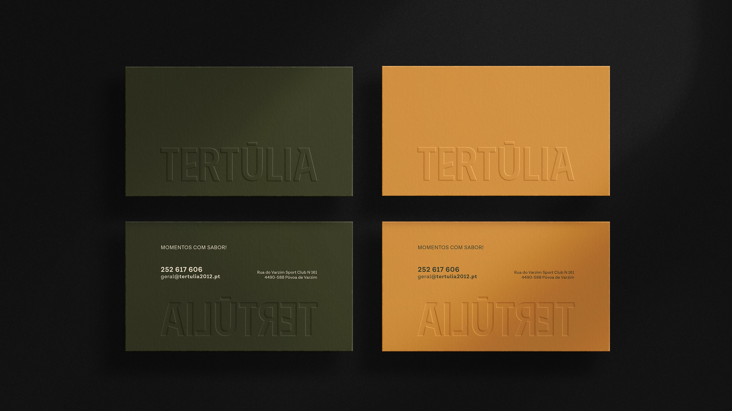 O logótipo foi redesenhado para transmitir elegância e simplicidade, com uma tipografia limpa e moderna, mas que ainda mantivesse a presença que o Tertúlia sempre teve na cidade. As cores foram escolhidas para transmitir calor e conforto, criando uma sensação de acolhimento que se estende a cada elemento do restaurante.