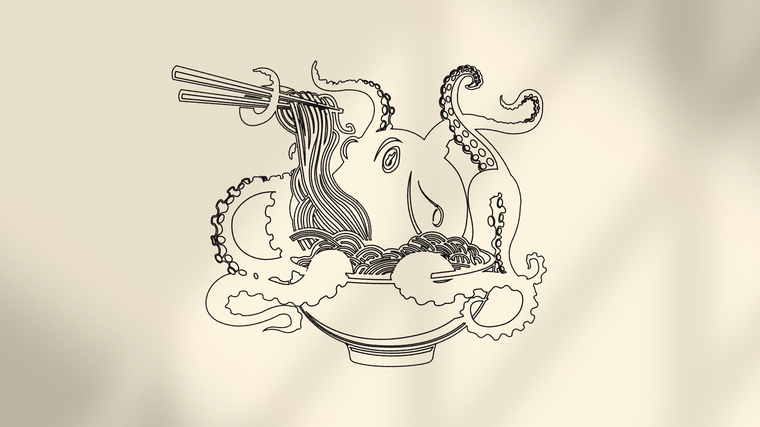 A tipografia personalizada, com curvas fluidas, remete aos noodles que protagonizam o menu, equilibrando a precisão geométrica com a leveza gastronómica.