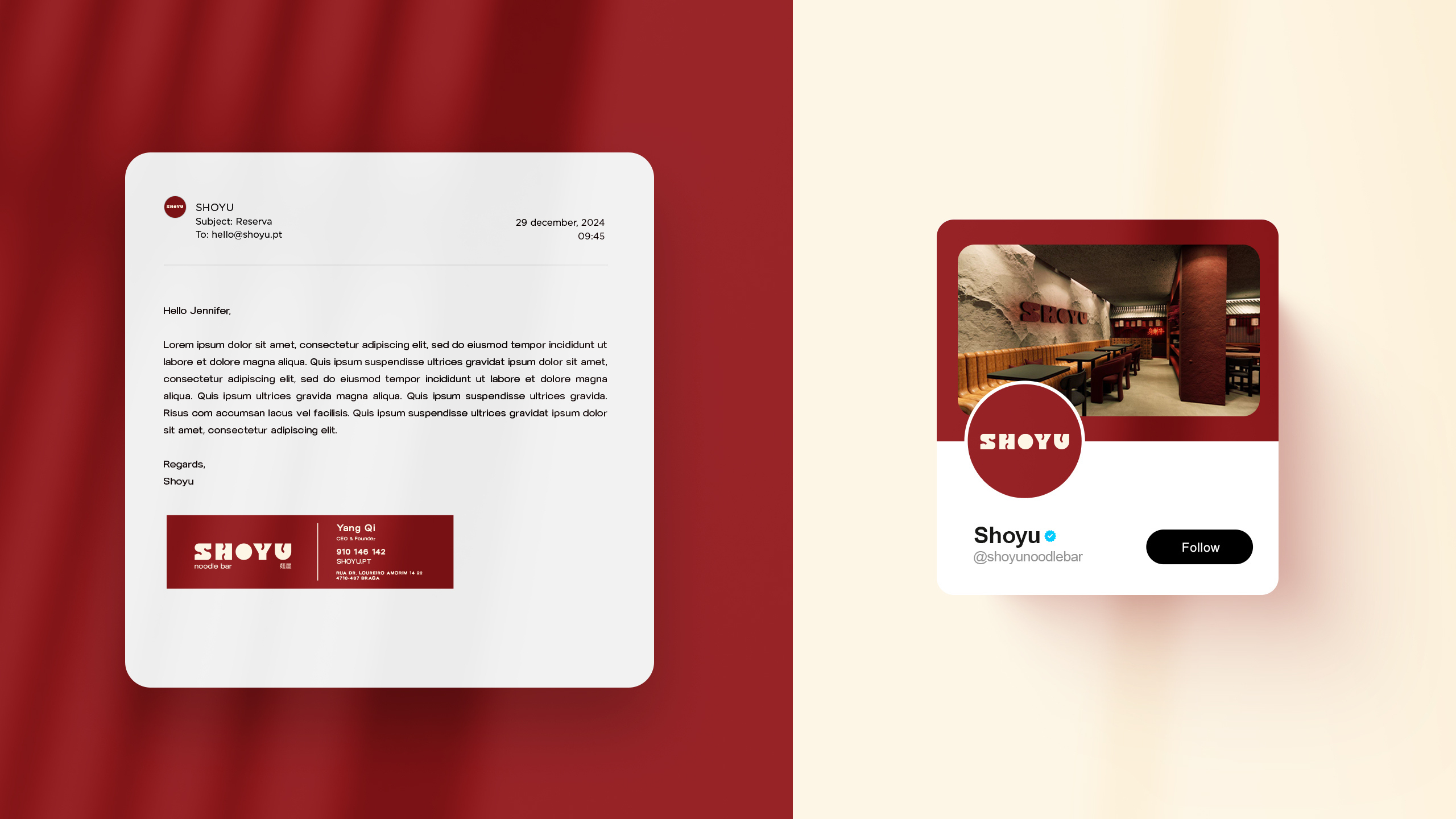 O objetivo era claro: criar uma marca que respirasse a energia da street food asiática, sem cair nos clichés. O Shoyu não queria ser mais um restaurante japonês. Queria ser o espaço que traz para a mesa uma experiência cultural completa, inspirada nos vibrantes noodle bars asiáticos, com destaque para o ramen.