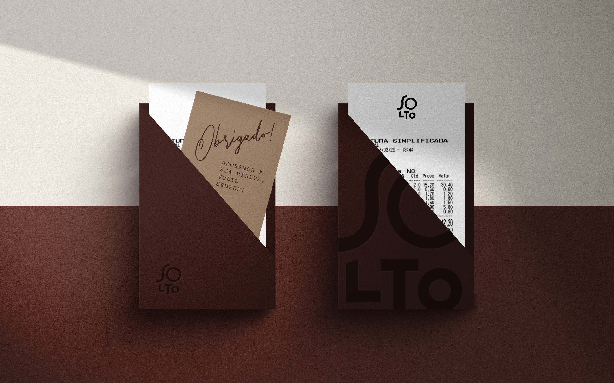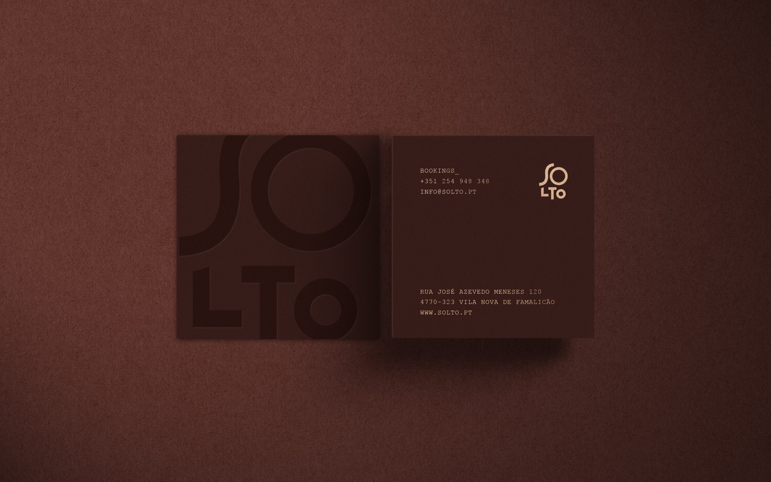 Alinhamos os círculos aos O’s do nome e à liberdade criativa dada pelo Solto, para criar uma imagem clean, imponente, com uma decisão bem tomada: as cores desta identidade são cores terra/madeira, elegante e modernas.