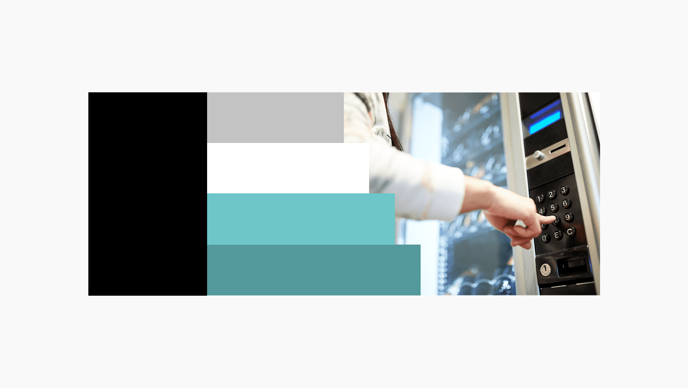 A identidade visual da marca tem como base uma tipografia rounded, dividida em 2 linhas, com a típica “ranhura” ovalizada para inserção de moedas como um elemento chave e identificativo de uma máquina de vending.
