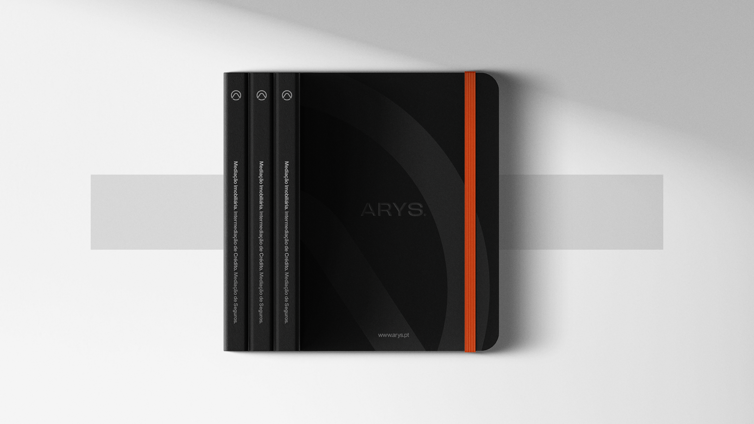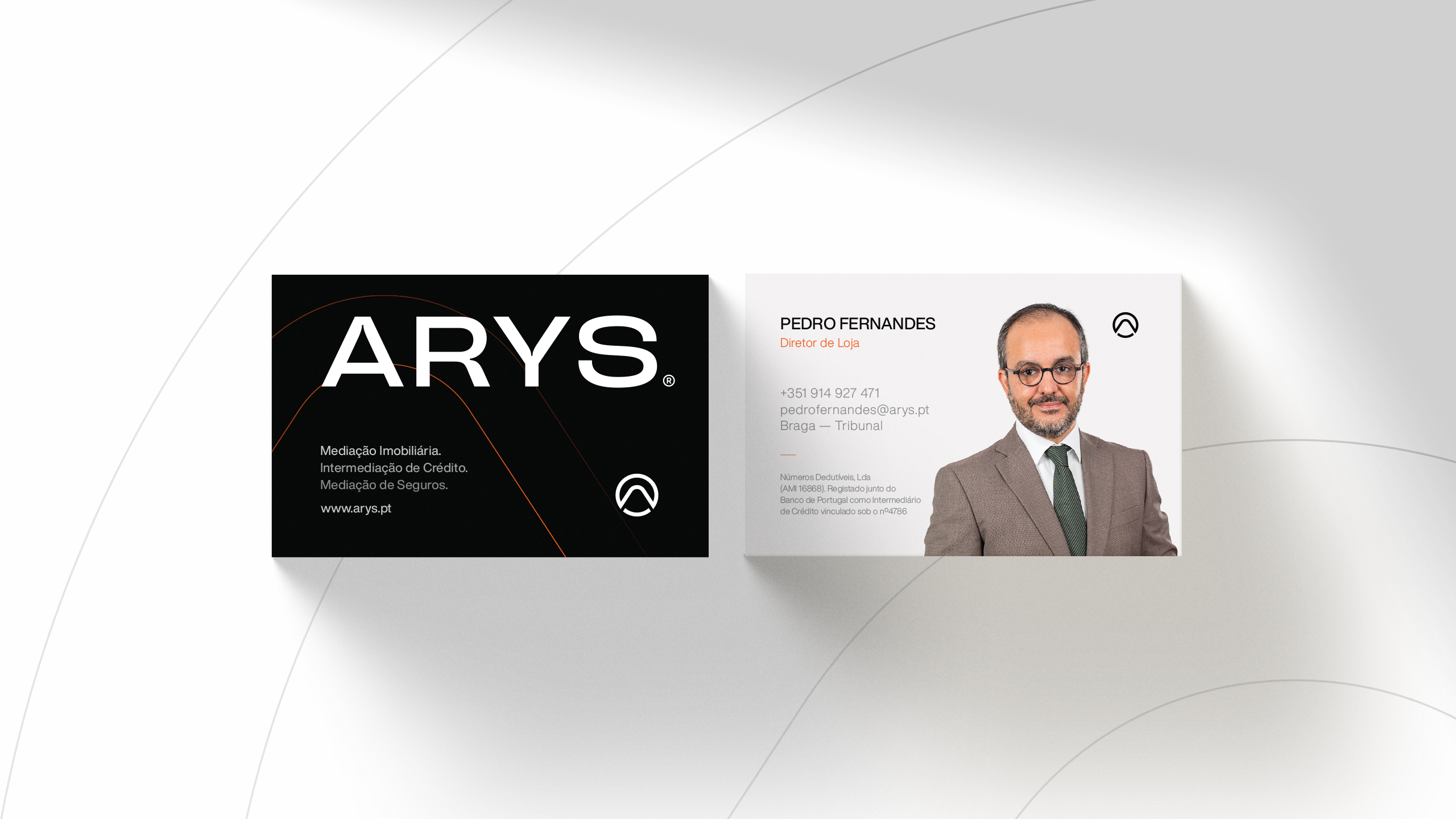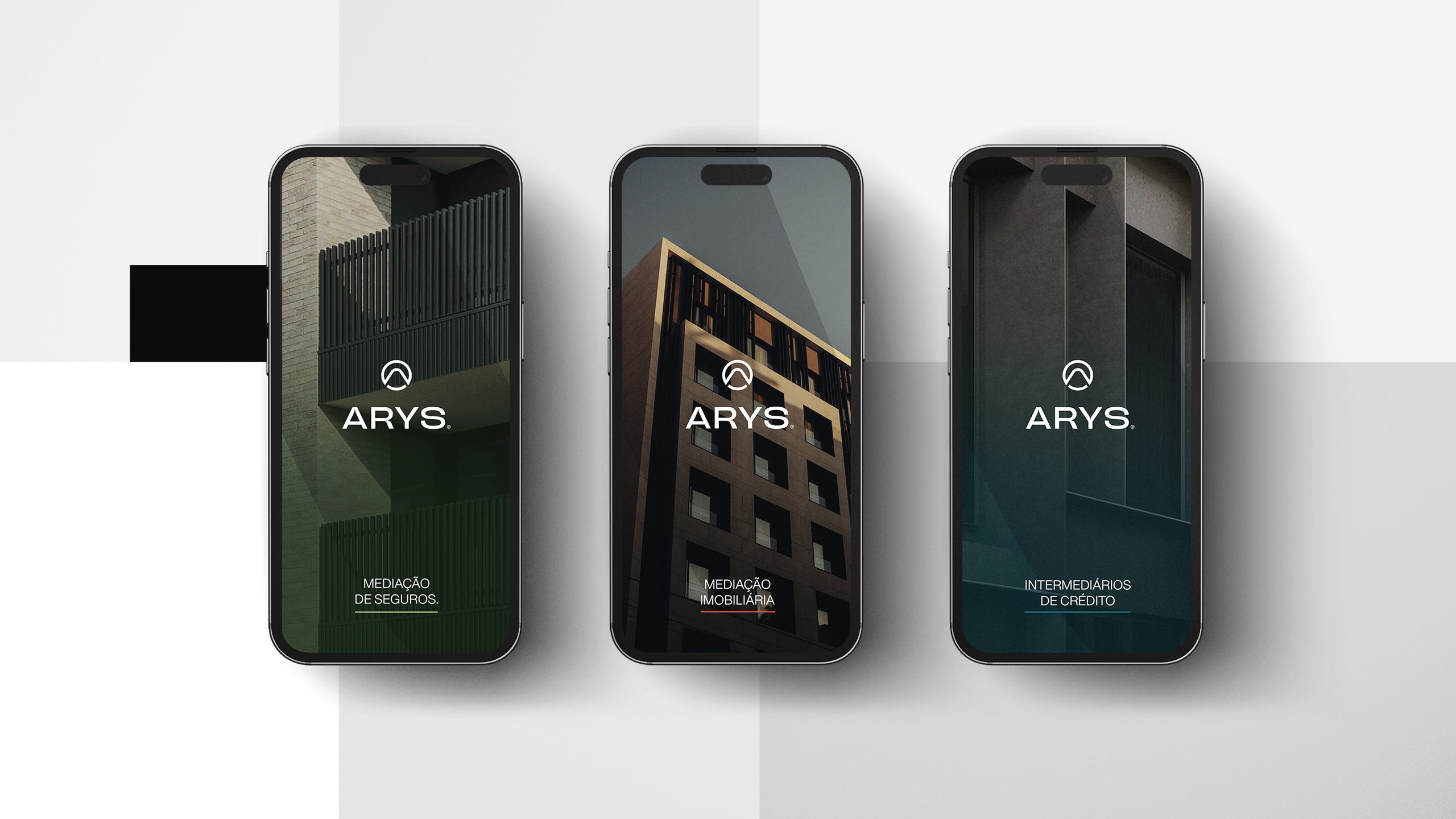 A criação da identidade visual da Arys assentou na construção de uma marca visualmente forte e com leitura imediata. O símbolo incorpora vários elementos-chave do posicionamento da marca: o círculo representa união e abrangência; o triângulo remete para crescimento e estabilidade; a letra “A” e o ícone de um telhado estabelecem uma ligação direta ao setor imobiliário. Esta composição simbólica transmite confiança, proximidade e inovação — pilares centrais da proposta de valor da Arys.A identidade foi pensada para ter alta adaptabilidade em todos os suportes e para criar reconhecimento imediato da marca. A paleta cromática, dominada por tons de cinza com toques estratégicos de laranja fogo, reforça o contraste entre sofisticação e energia, ajudando a Arys a destacar-se num mercado onde a diferenciação é chave.