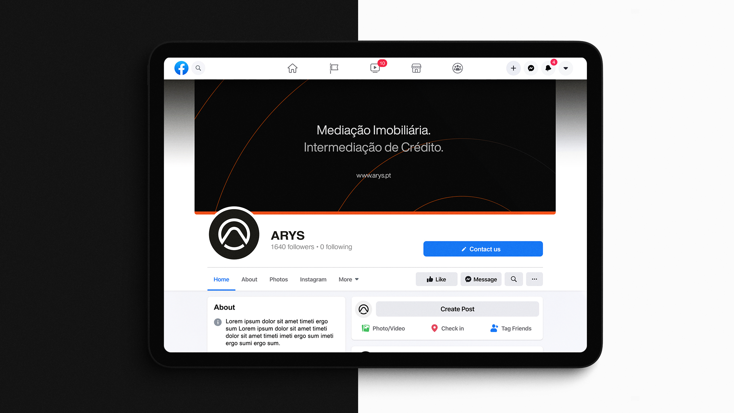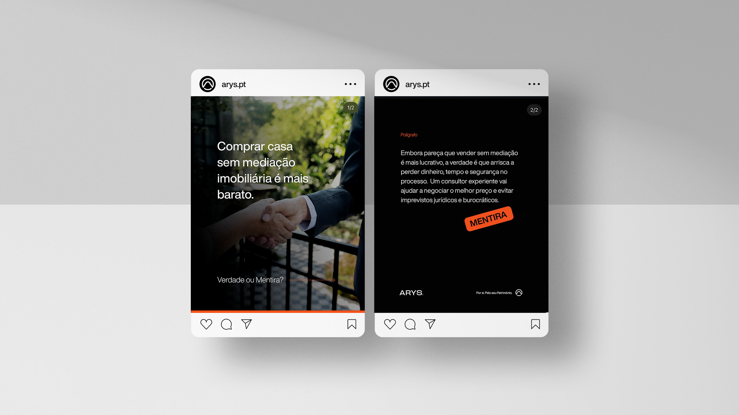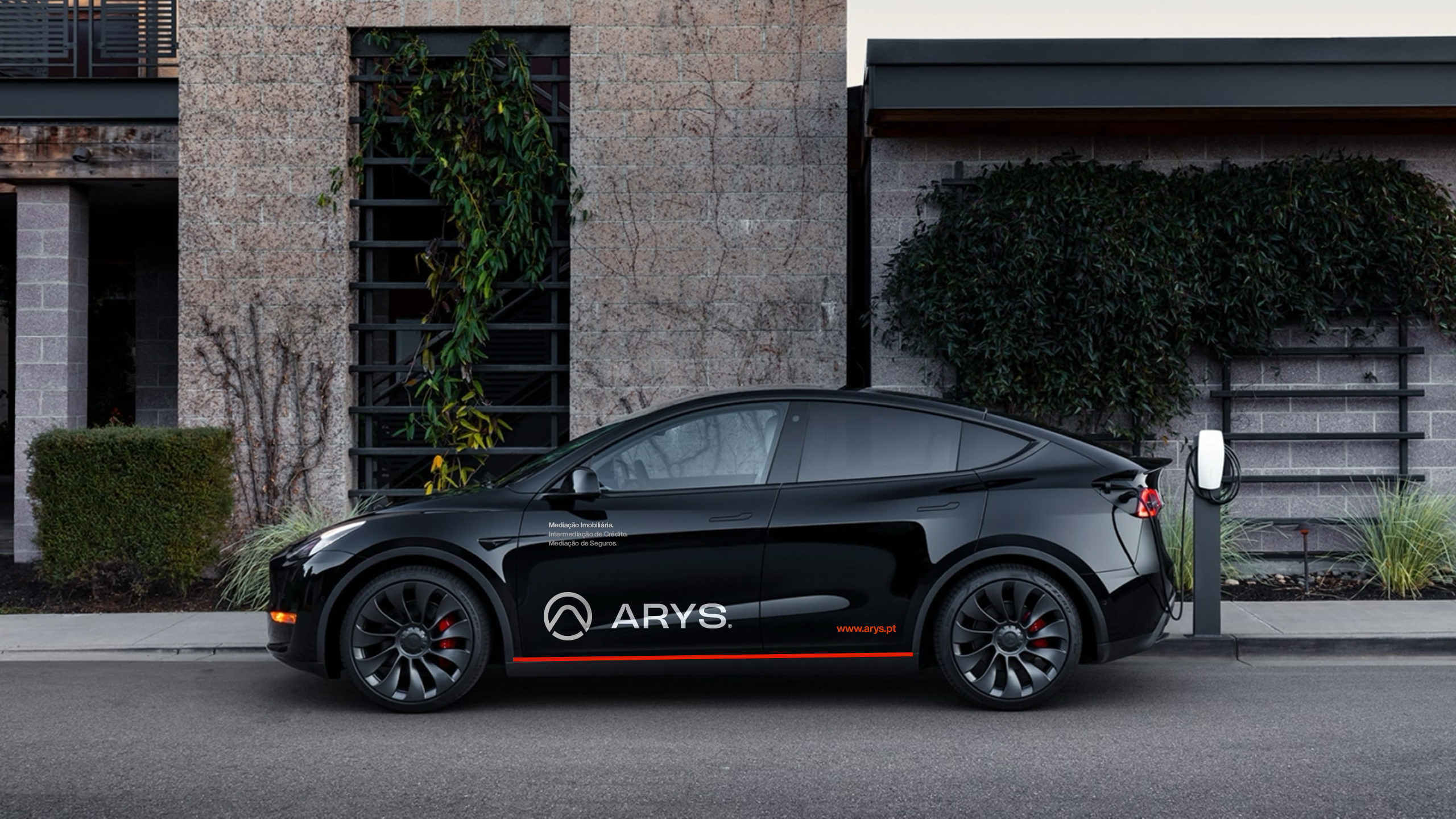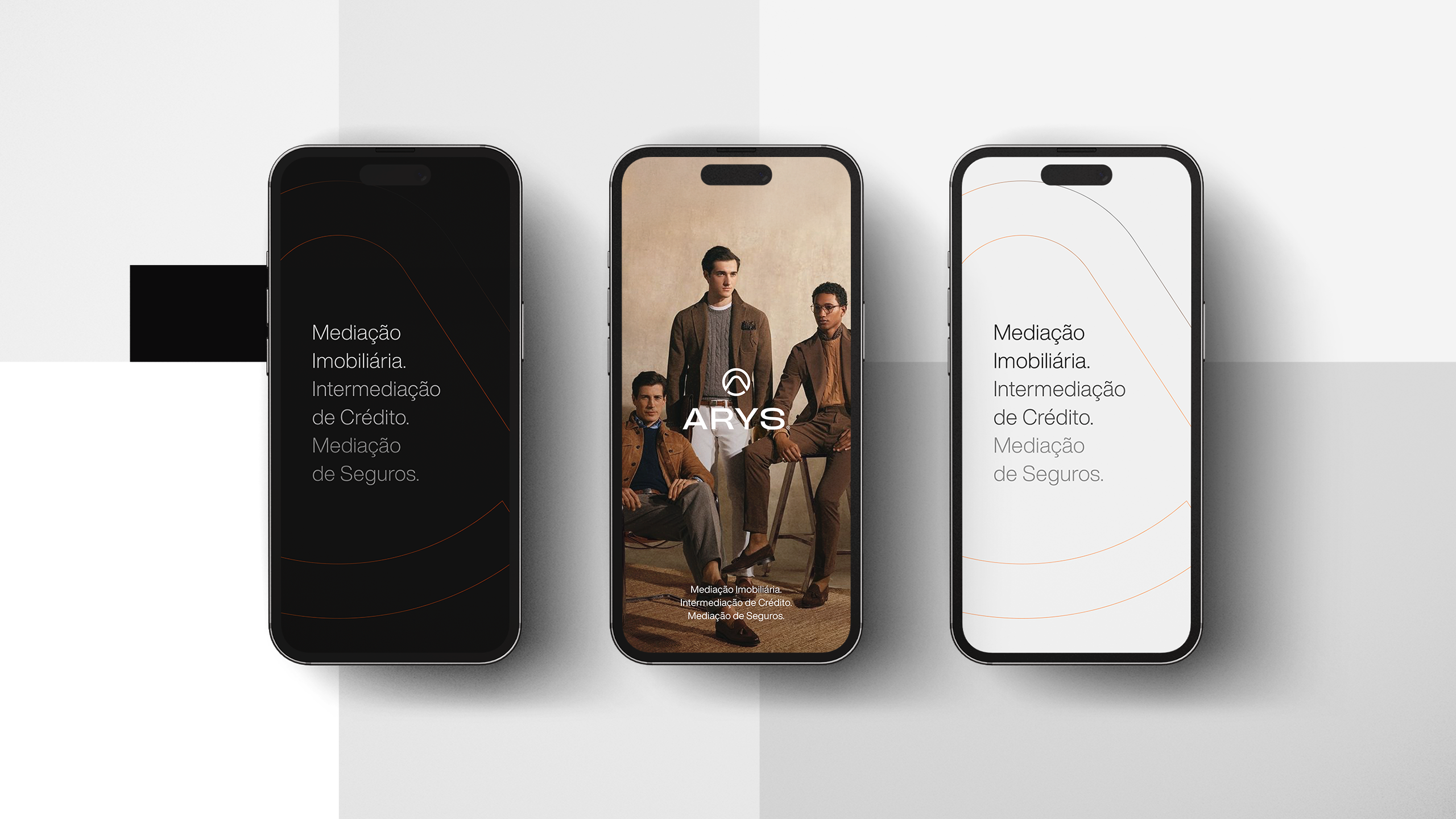 A criação da identidade visual da Arys assentou na construção de uma marca visualmente forte e com leitura imediata. O símbolo incorpora vários elementos-chave do posicionamento da marca: o círculo representa união e abrangência; o triângulo remete para crescimento e estabilidade; a letra “A” e o ícone de um telhado estabelecem uma ligação direta ao setor imobiliário. Esta composição simbólica transmite confiança, proximidade e inovação — pilares centrais da proposta de valor da Arys.A identidade foi pensada para ter alta adaptabilidade em todos os suportes e para criar reconhecimento imediato da marca. A paleta cromática, dominada por tons de cinza com toques estratégicos de laranja fogo, reforça o contraste entre sofisticação e energia, ajudando a Arys a destacar-se num mercado onde a diferenciação é chave.