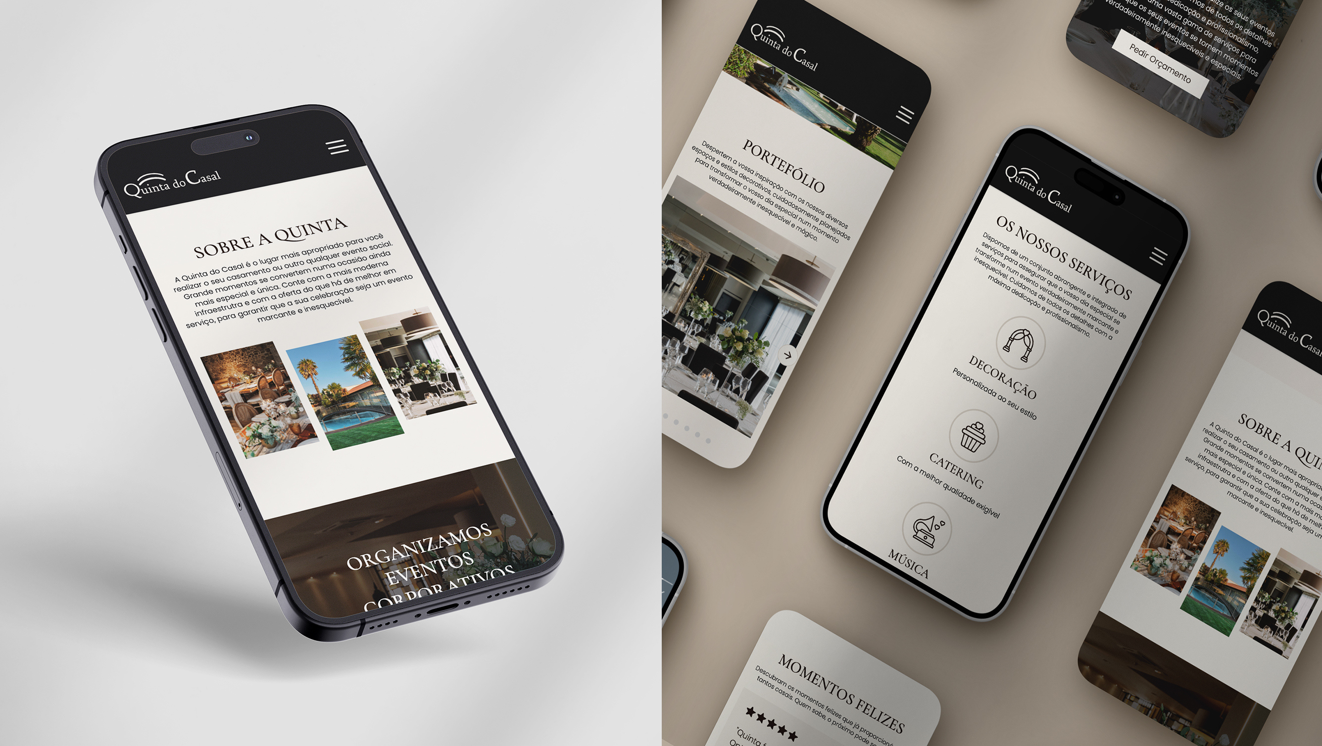 Com um design pensado ao detalhe, cada secção foi desenvolvida para encantar: desde o vídeo de boas-vindas que envolve de imediato, às imagens que revelam a beleza da quinta em cada ângulo. Cada clique convida a explorar e a imaginar o evento perfeito.