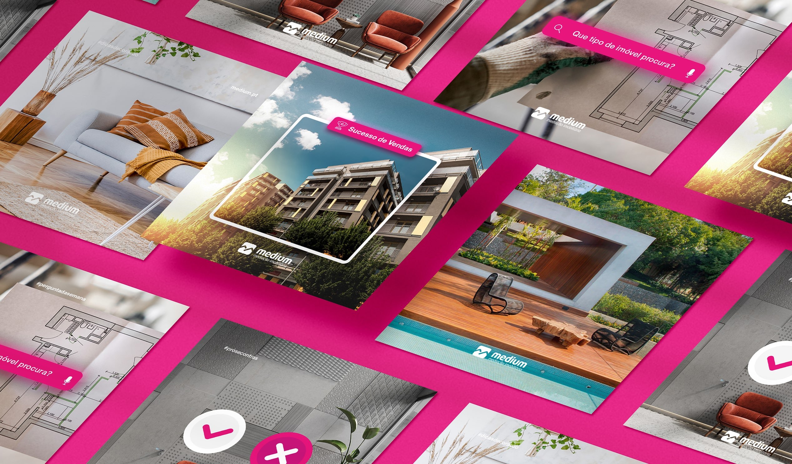 E como não iríamos perder por nada mais um projeto da Medium, assente numa estratégia de comunicação 360º, desenvolvemos uma nova linguagem com base no lançamento de novas rubricas. Utilizando a visibilidade dos consultores como veículo condutor para aumentar o engagement das páginas. Auxiliando os seguidores em todo o processo de compra/venda de um imóvel, através de dicas chave para a realização de negócios transparentes e seguros.