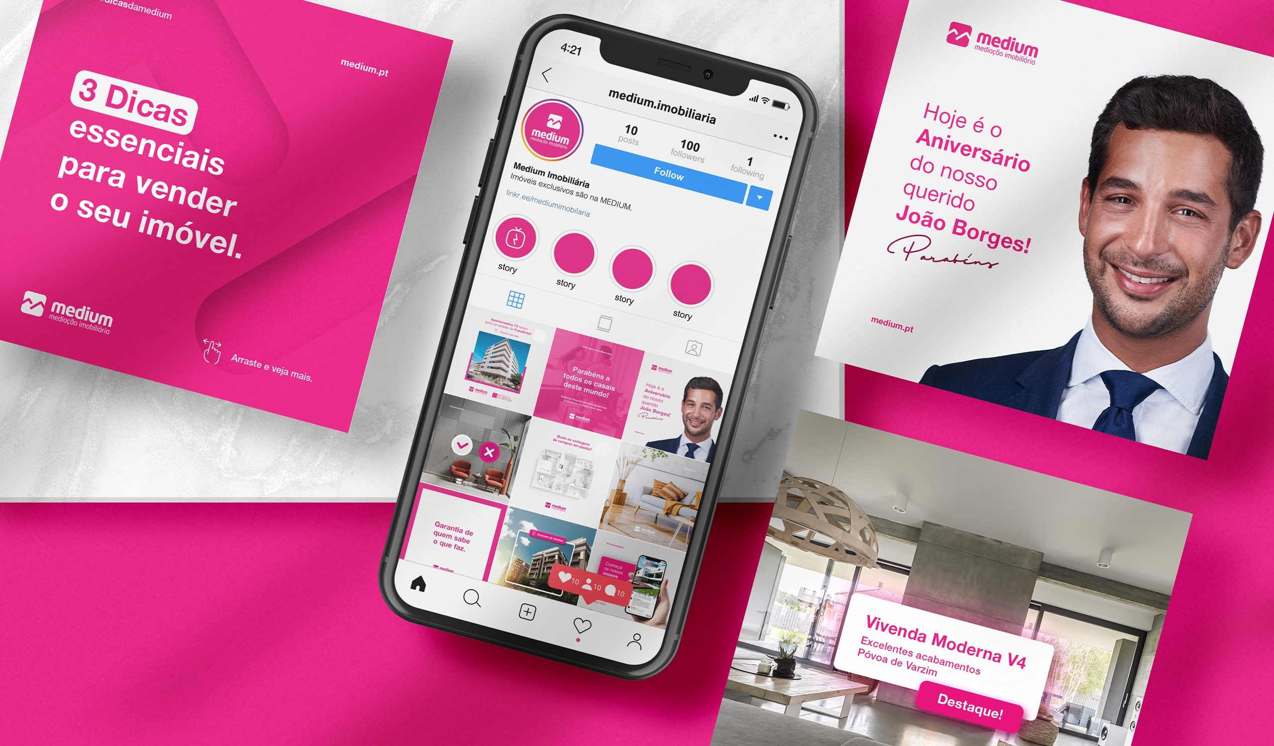 Um dos seus pilares é, sem sombra de dúvidas, criar e manter relações sólidas e de confiança que se prolongam no tempo. As redes sociais são, por isso, um canal crucial na comunicação da MEDIUM, mantendo a preocupação por manter uma voz ativa, consistente e informada sobre o mercado imobiliário, em simultâneo com a necessidade de estar a par das últimas tendências da comunicação digital.