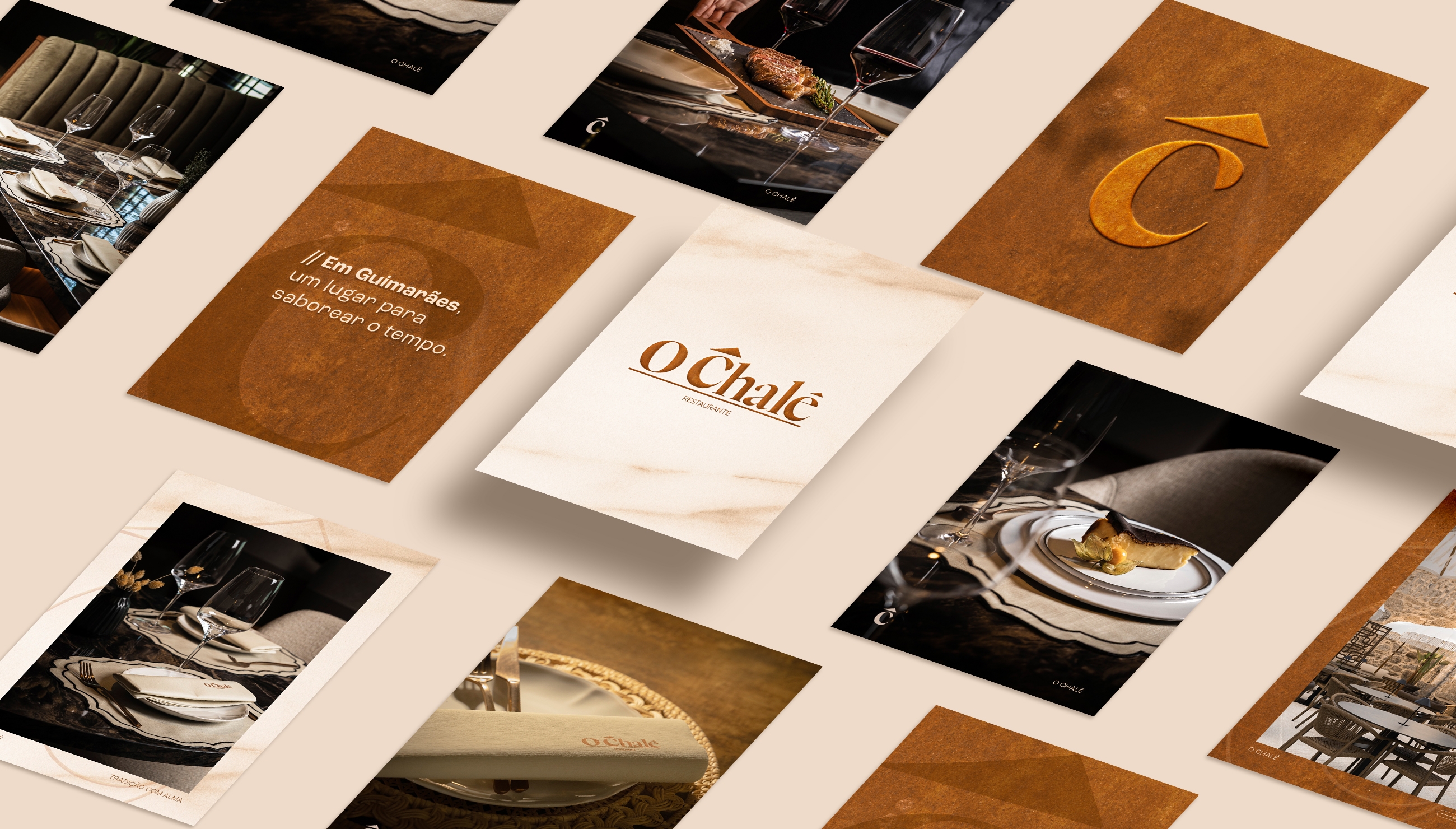 O desafio passava por criar uma linguagem de comunicação capaz de refletir a essência do restaurante, traduzindo o equilíbrio entre tradição e contemporaneidade que define O Chalé.