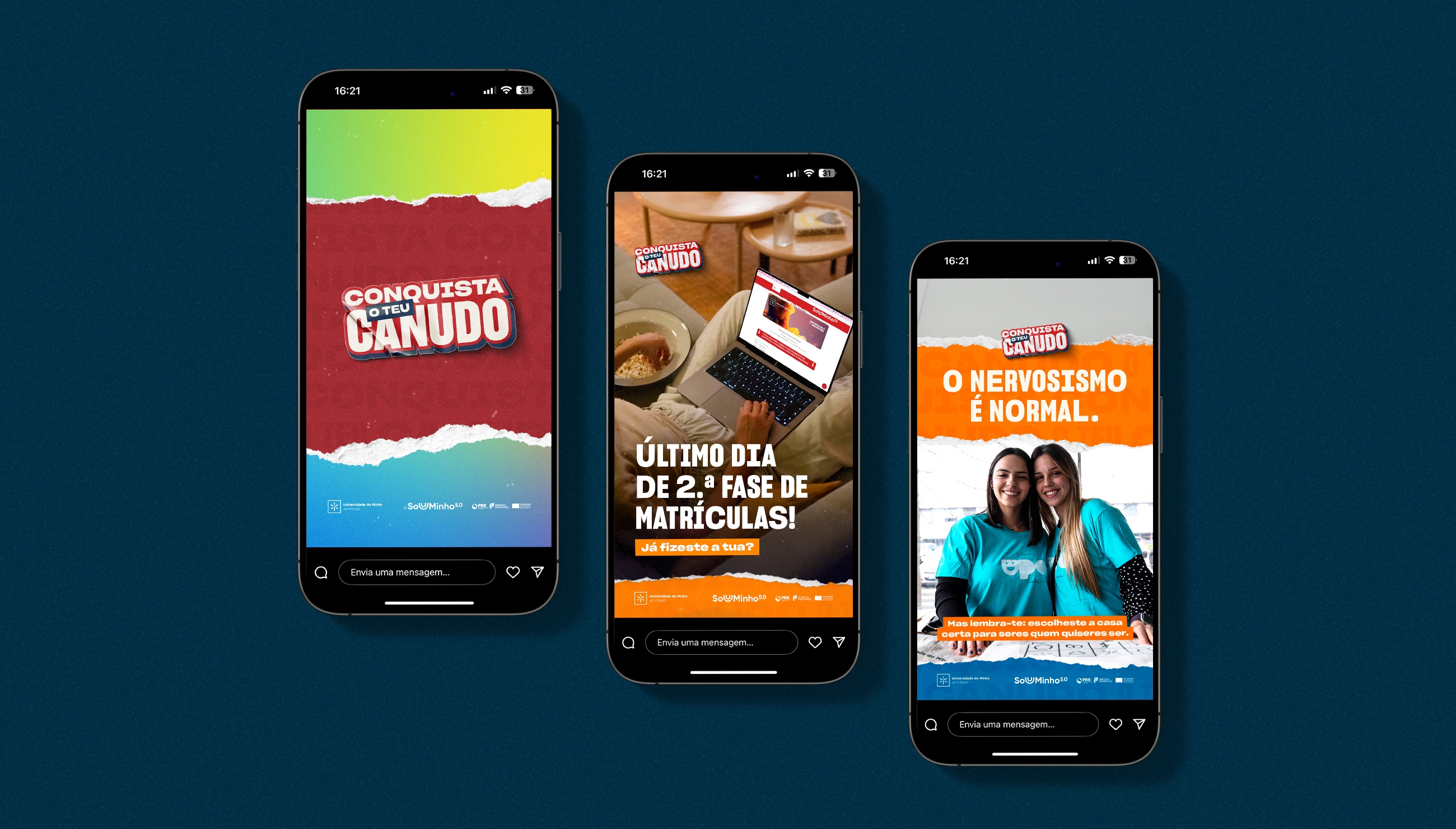 Em suma, “Conquista o teu Canudo” transformou scroll em intenção. A identidade visual plural, a tipografia que respira mudança e os grafismos que assumem as imperfeições reais tornaram a campanha humana e próxima, a arquitetura de conteúdos por canal e os sprints criativos fizeram o resto. A UMinho ganhou voz no feed certo, no momento certo e ficou onde queria estar: na primeira escolha.