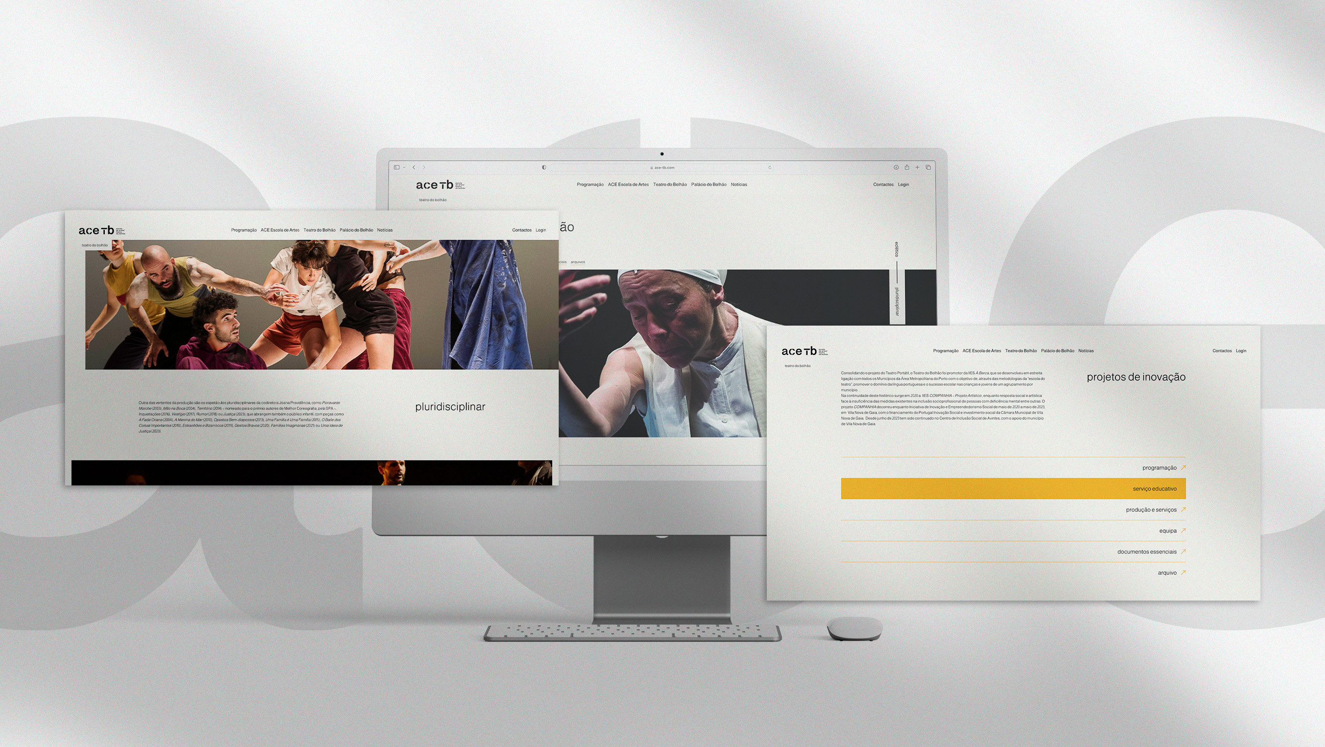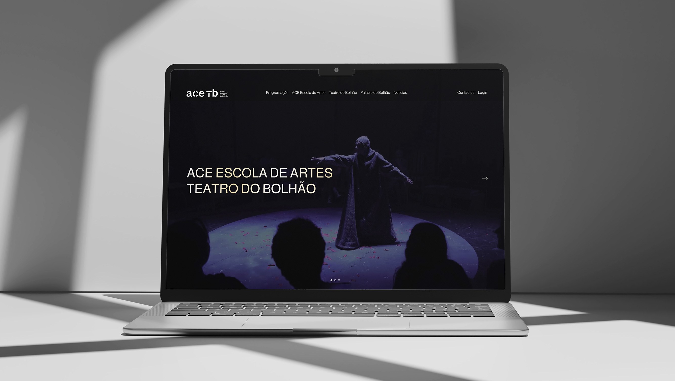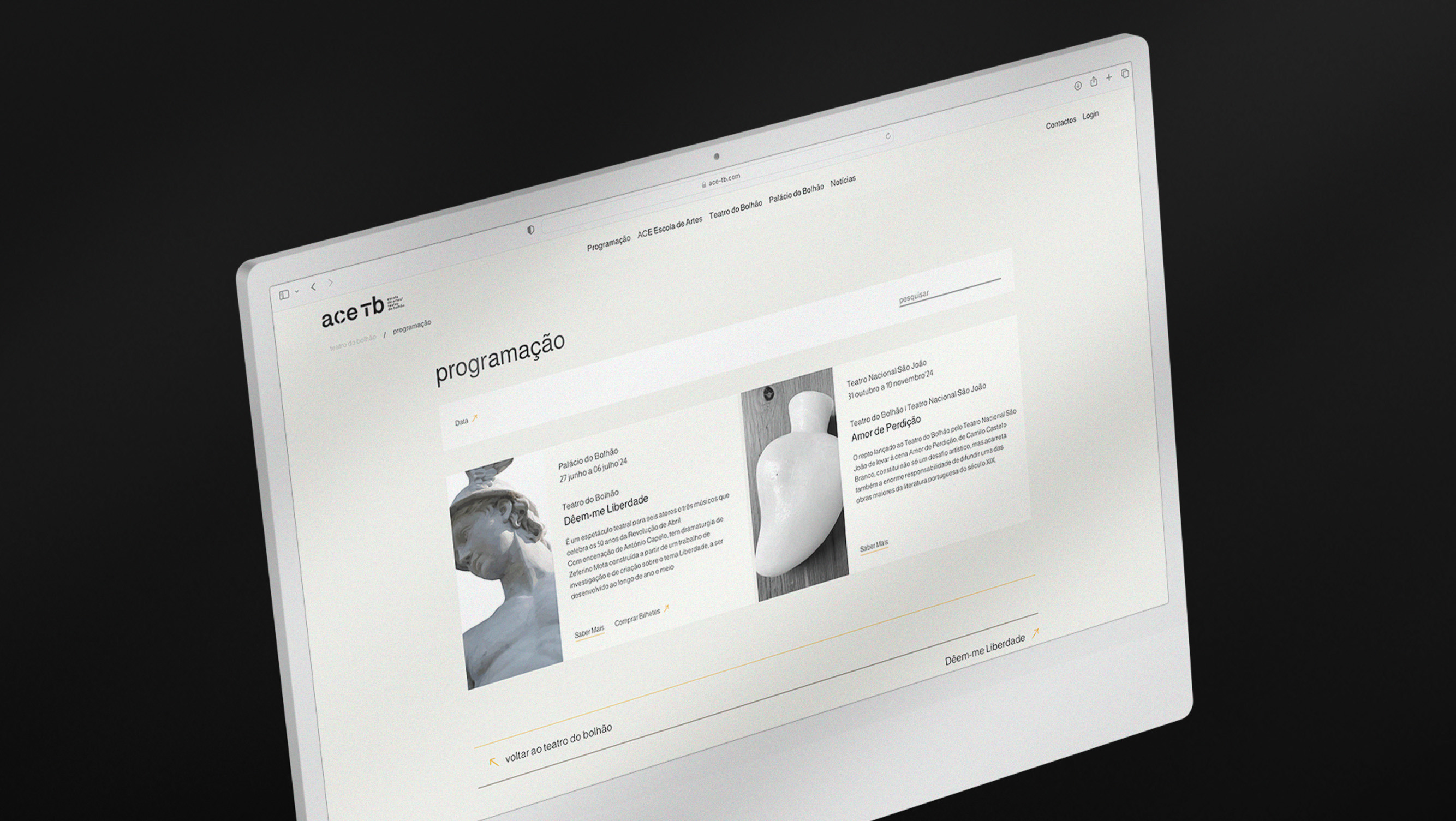 O que fizemos para o novo website começou com essas marcações: onde ficam os diversos protagonistas em palco. A cena inicial tem 3 atos: Espetáculos, Cursos e Palácio do Bolhão. E à medida que a história está a ser contada, entram mais personagens, figurinos e adereços. E todos merecem destaque, principalmente uma página de notícias.