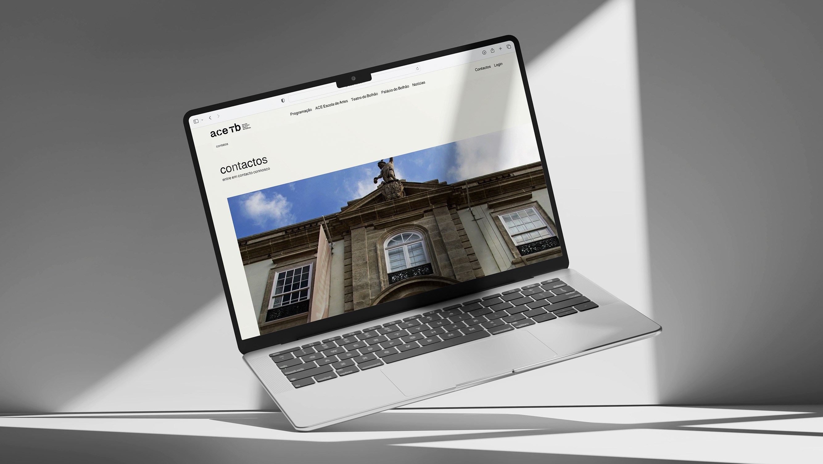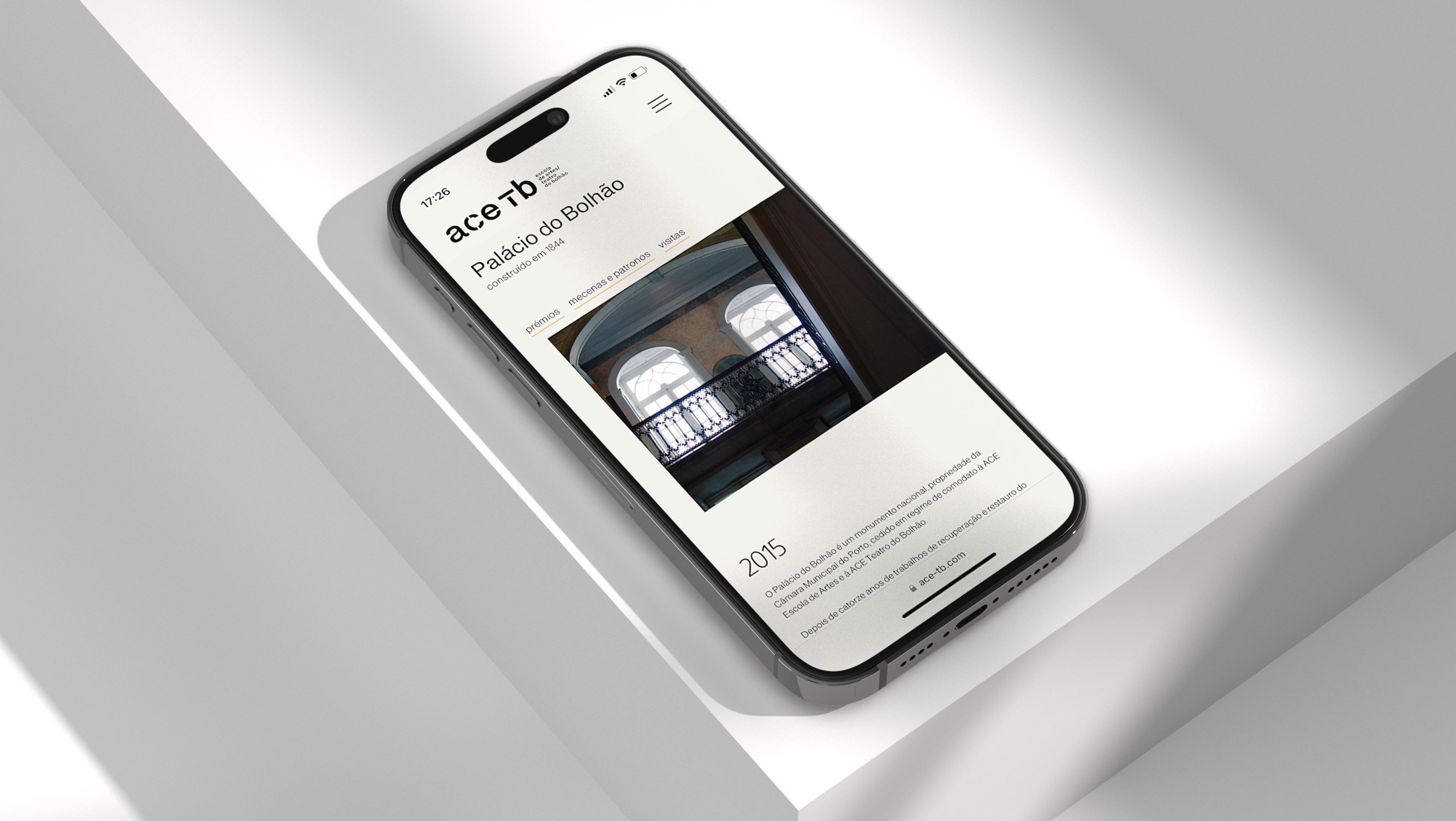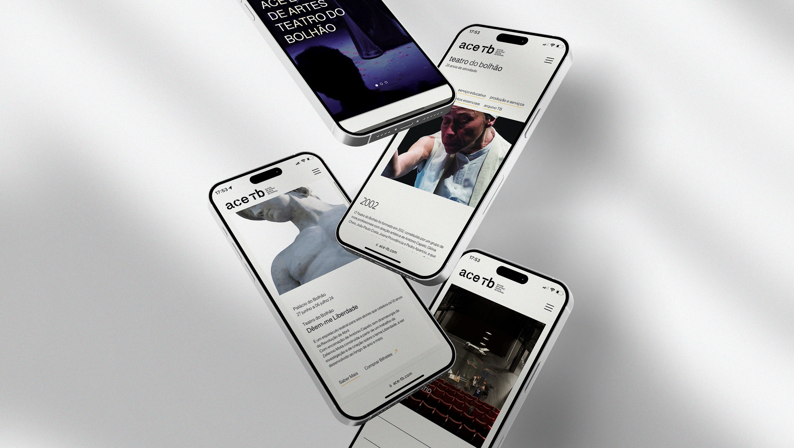 O que fizemos para o novo website começou com essas marcações: onde ficam os diversos protagonistas em palco. A cena inicial tem 3 atos: Espetáculos, Cursos e Palácio do Bolhão. E à medida que a história está a ser contada, entram mais personagens, figurinos e adereços. E todos merecem destaque, principalmente uma página de notícias.
