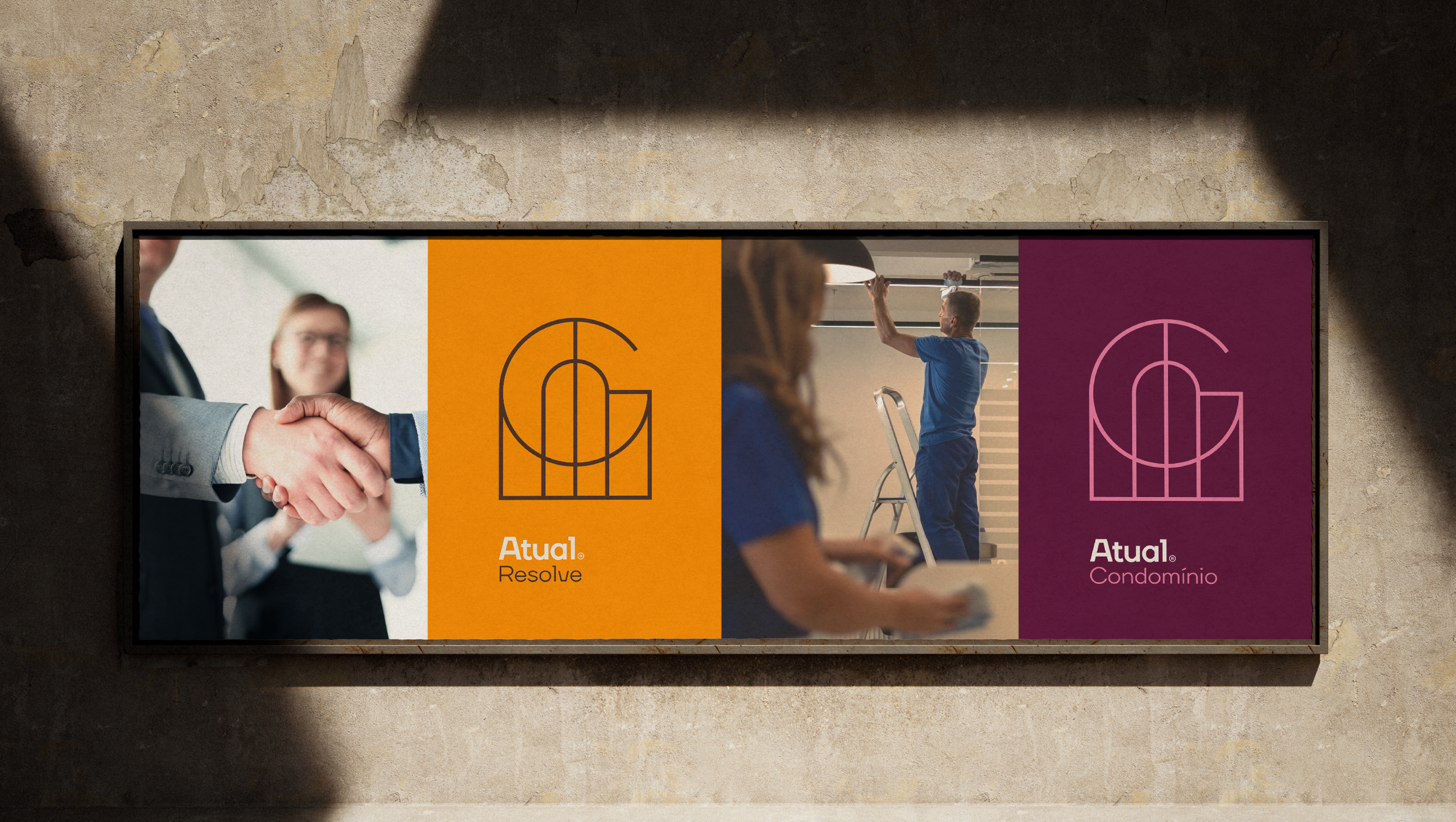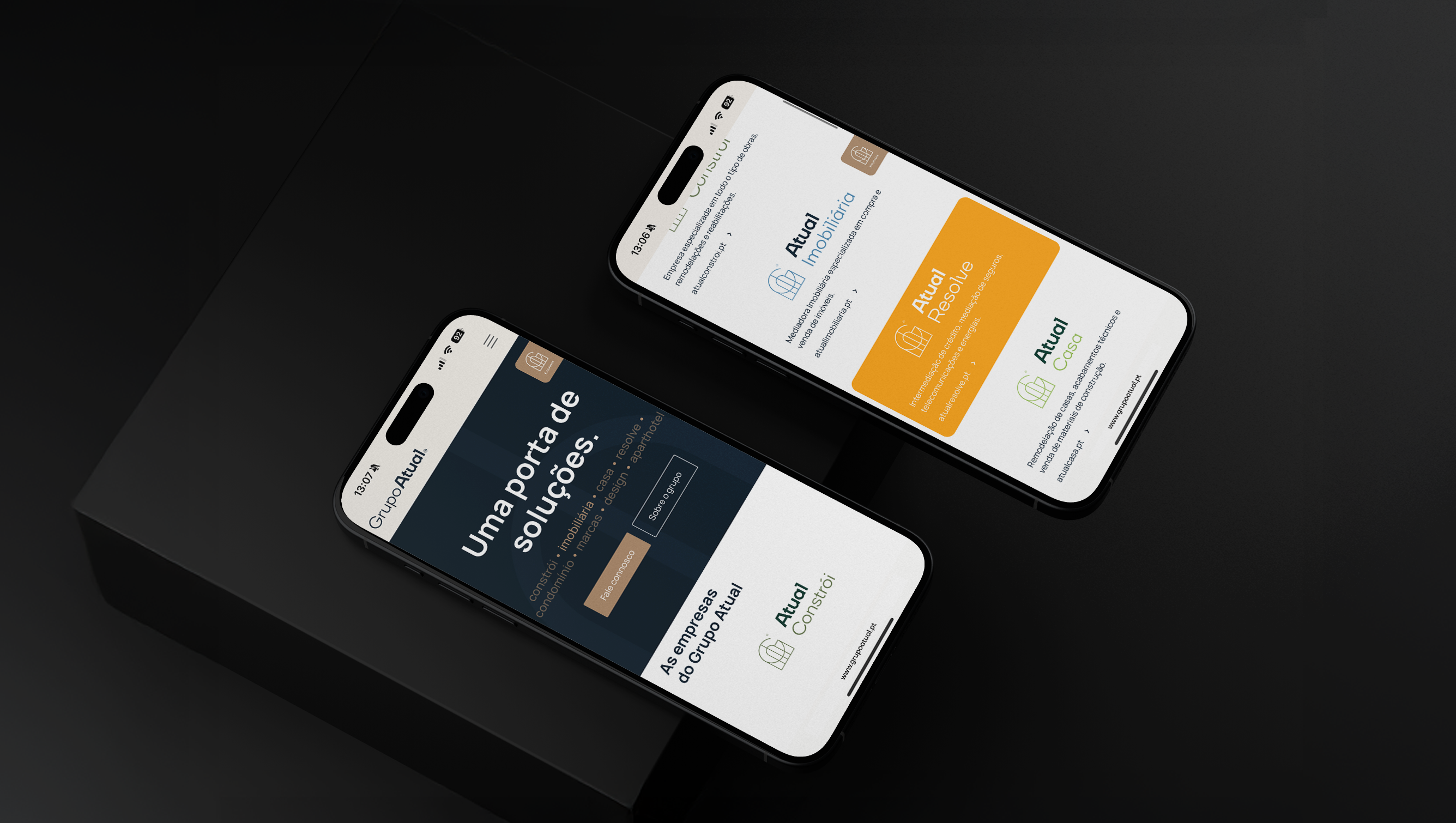 Desenvolvemos um rebranding que redefine a forma como o Grupo Atual se apresenta, tanto visualmente como digitalmente.