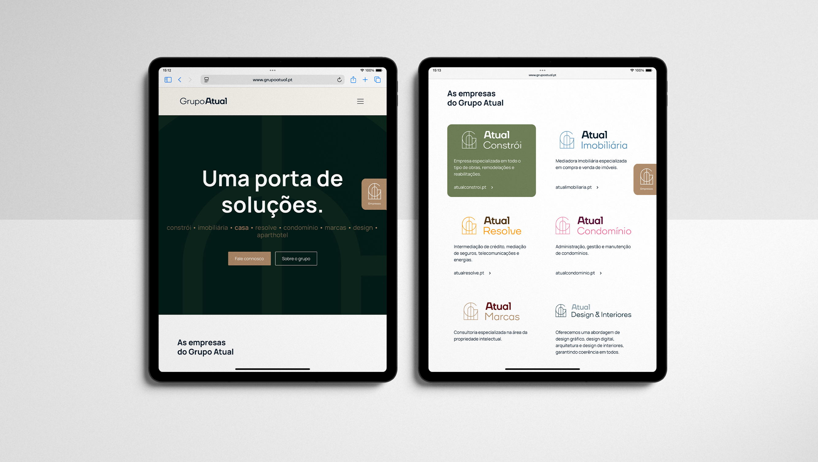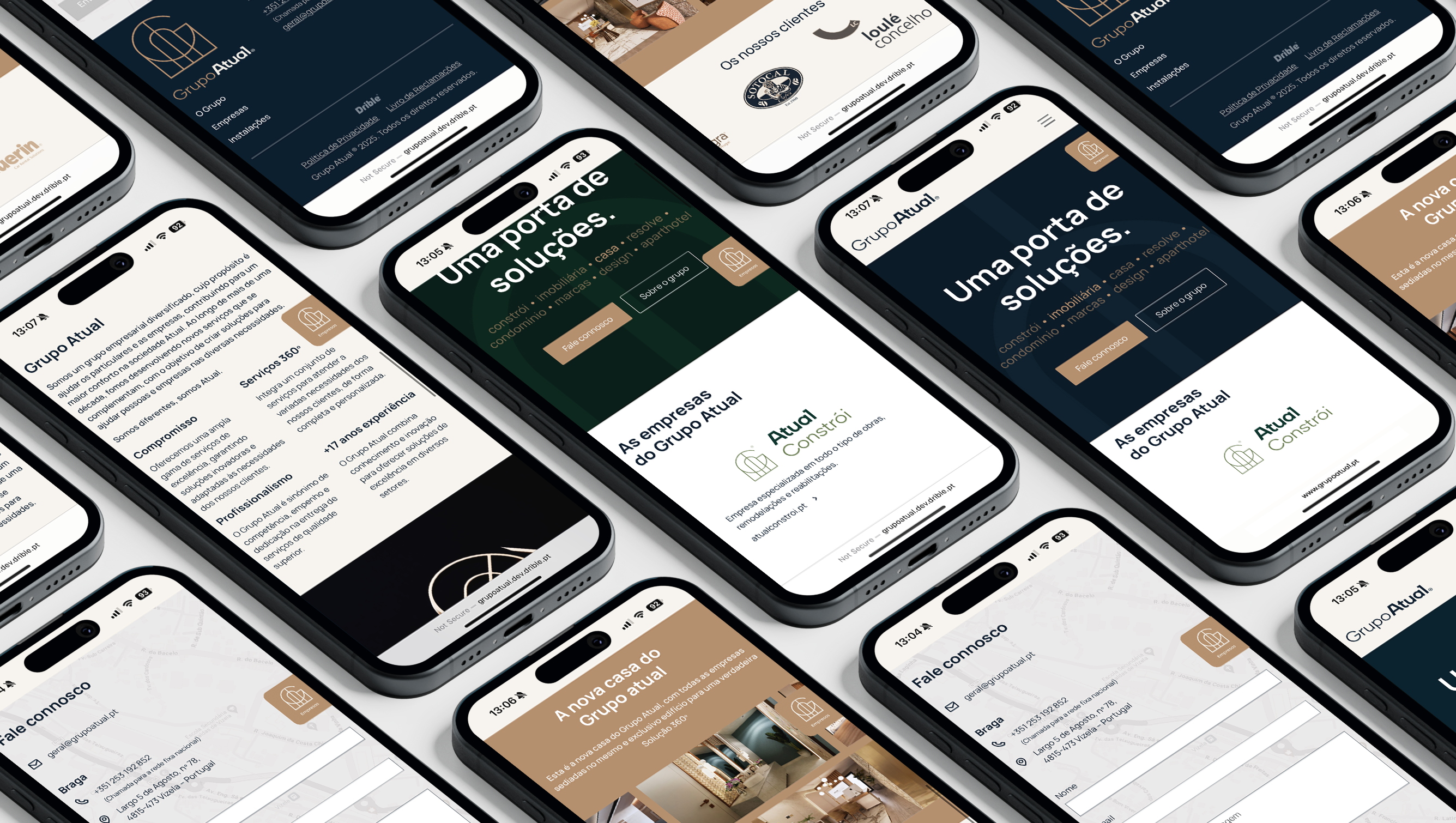 O Grupo Atual atua desde 2004 em várias áreas de negócio, imobiliário, financeiro, design e apoio jurídico, acompanhando clientes em diferentes fases da sua vida. No entanto, apesar da dimensão e profissionalismo, o grupo enfrentava um problema estrutural: cada empresa tinha a sua própria identidade visual, desconectada das restantes e sem um fio condutor que comunicasse a força e união do grupo.