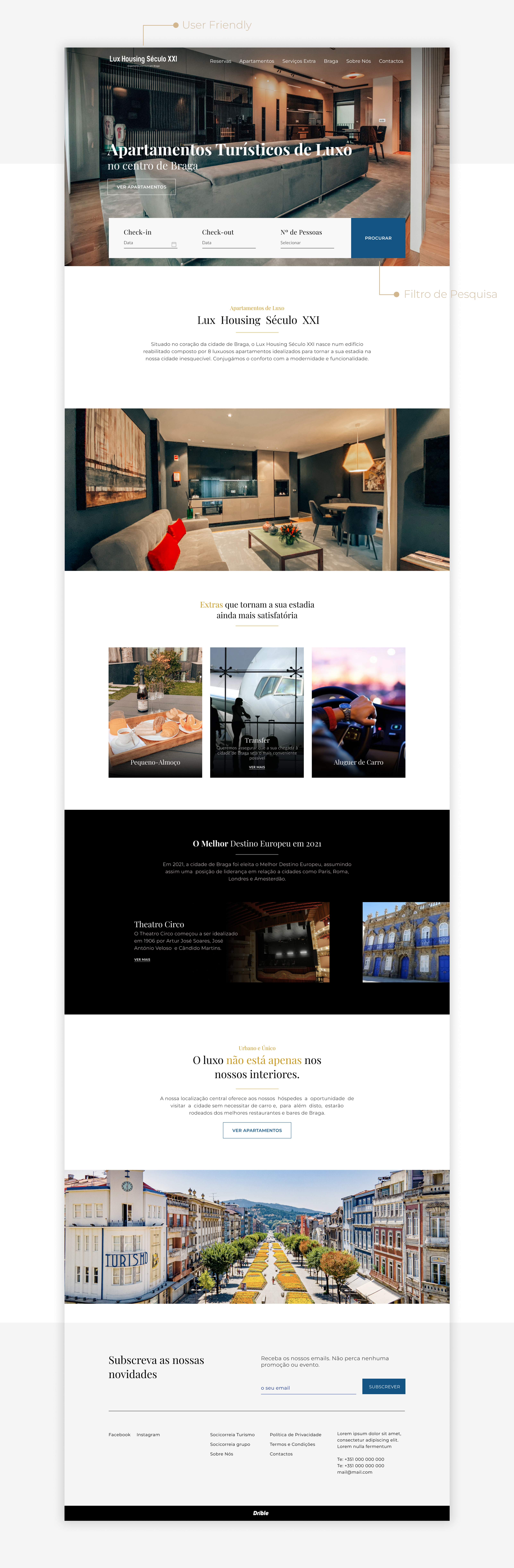 Este novo website vem então facilitar e melhorar a qualidade da comunicação digital do Lux Housing, bem como atribuir a todos os seus clientes um modo simples e intuitivo de conhecer os seus alojamentos e serviços, facilitando a reserva dos mesmos.