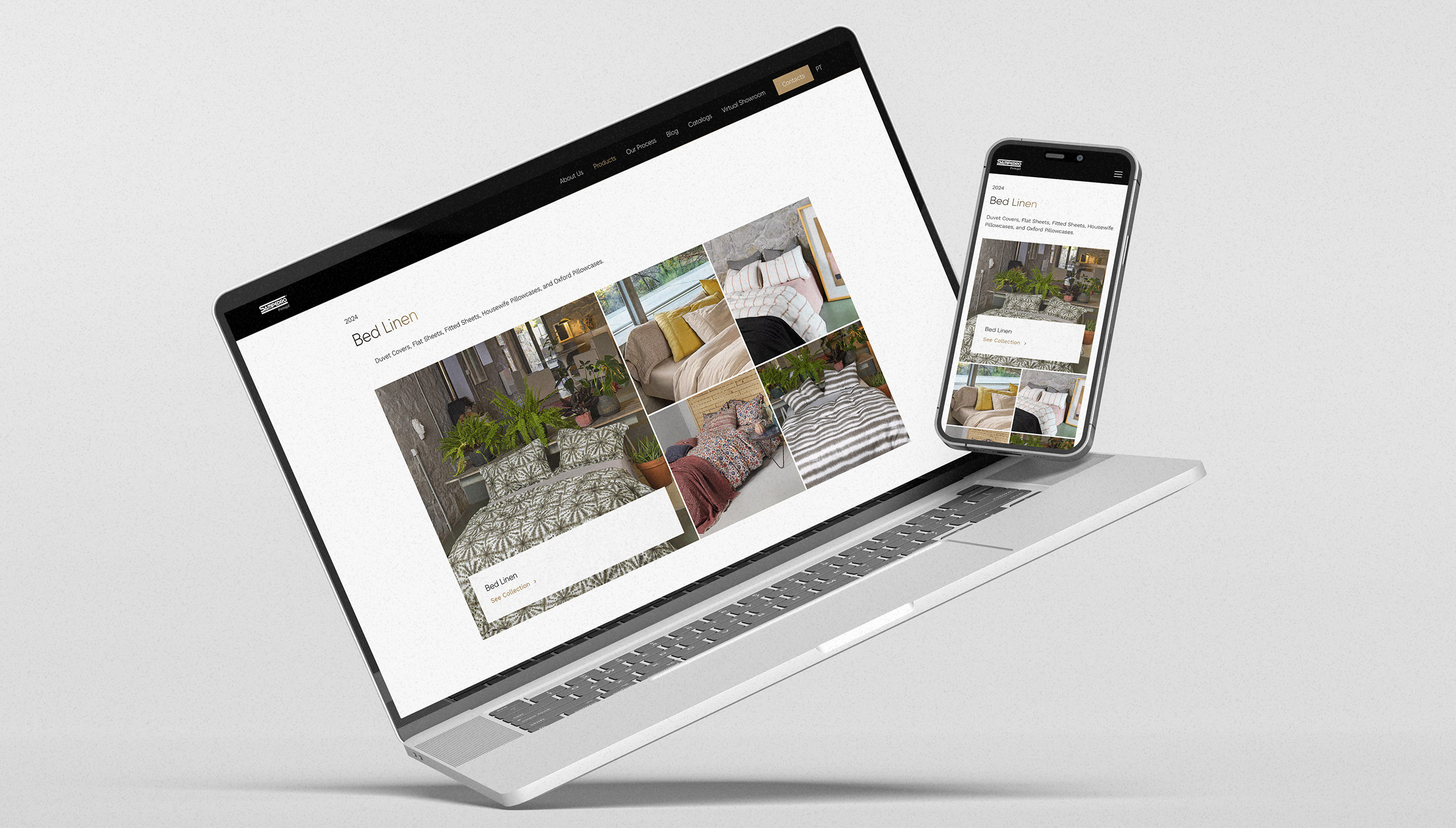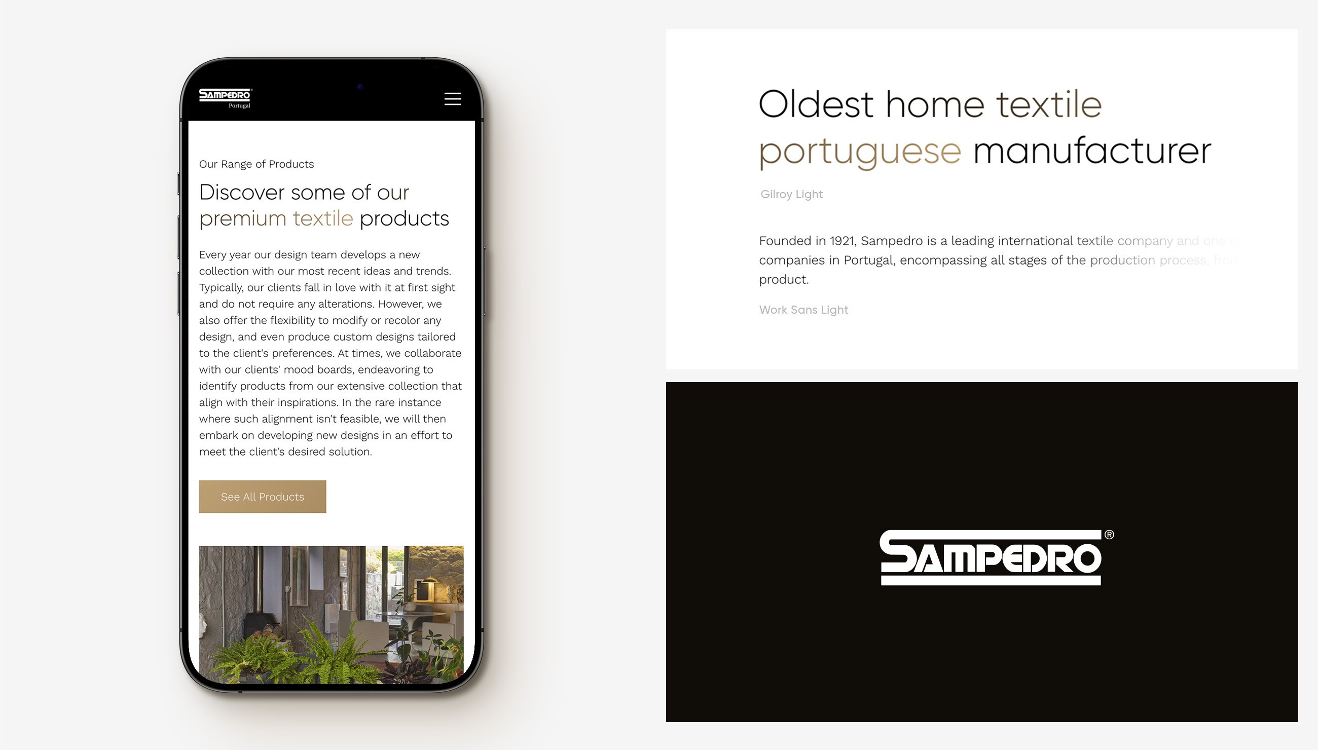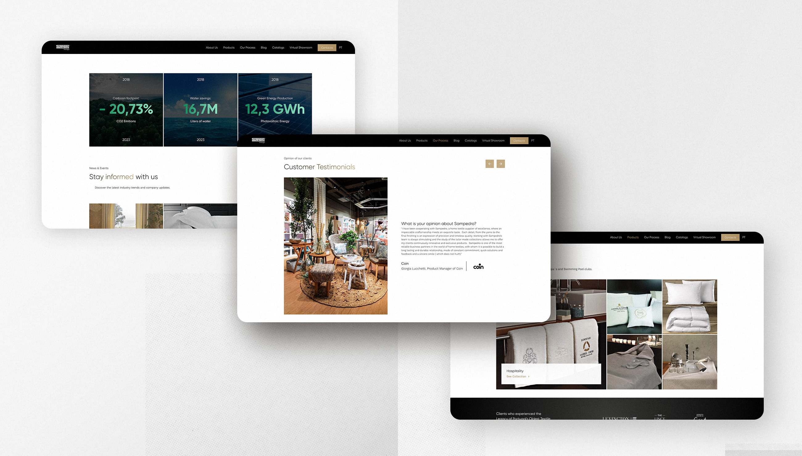O desafio principal para o novo site da Sampedro passou por alterar o foco no produto individual para mostrar um serviço completo. Combinar produtos para um efeito harmonioso é a definição de uma coleção.