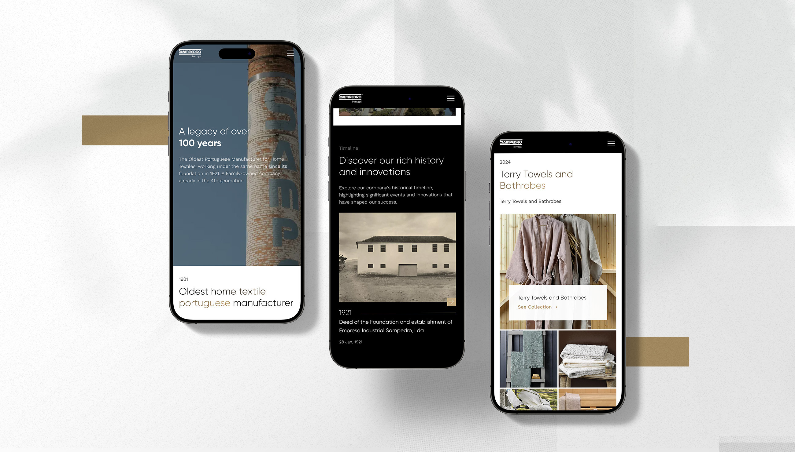 Fundada em 1921, a Sampedro precisava de contar ao mundo a sua história. Foi a primeira empresa, em Portugal, a produzir pano de lençol em xadrez, riscas e estampado. É preciso saber a história das marcas? Sim, porque é da história que construímos os pilares de um negócio: idealismo e romantismo.