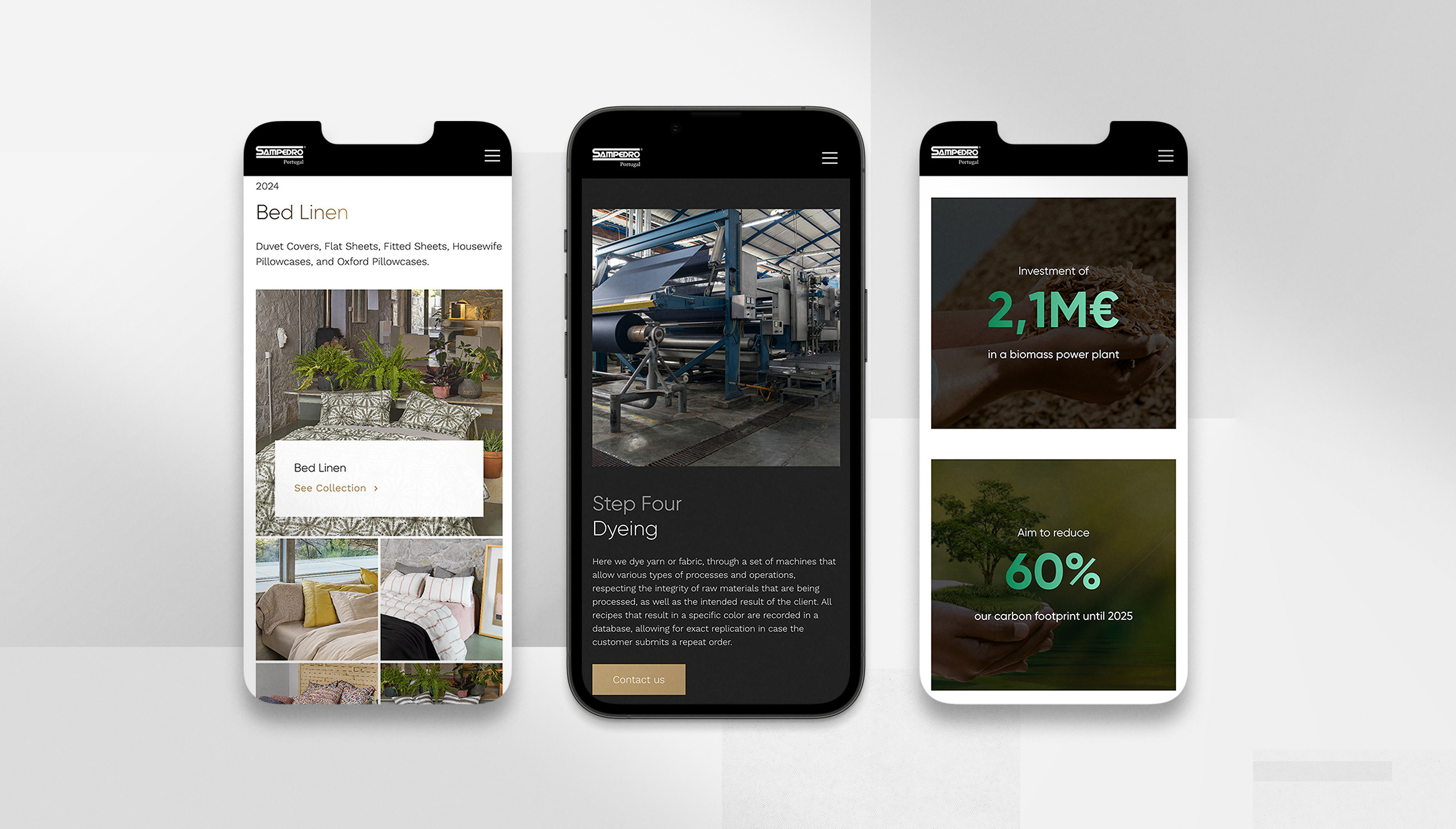 Eles, Sampedro, sendo uma empresa verticalizada: inclui todas as fases do processo produtivo, desde o fio até ao produto final. Mas o objetivo é ir além: até 2025, a Sampedro compromete-se a reduzir a sua pegada carbónica até 60%, produzindo com fibras sustentáveis, como algodão orgânico, linho e cânhamo.