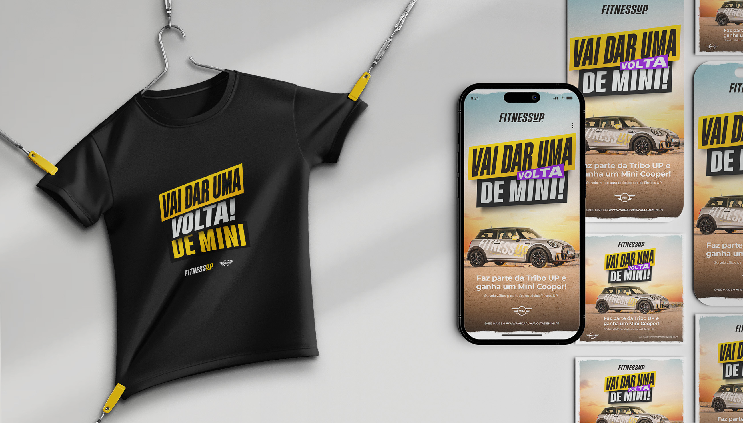 “Vai dar uma volta de Mini” é o mote da campanha da cadeia de ginásios Fitness Up e conta com a identidade gráfica e website produzidos pela Drible.