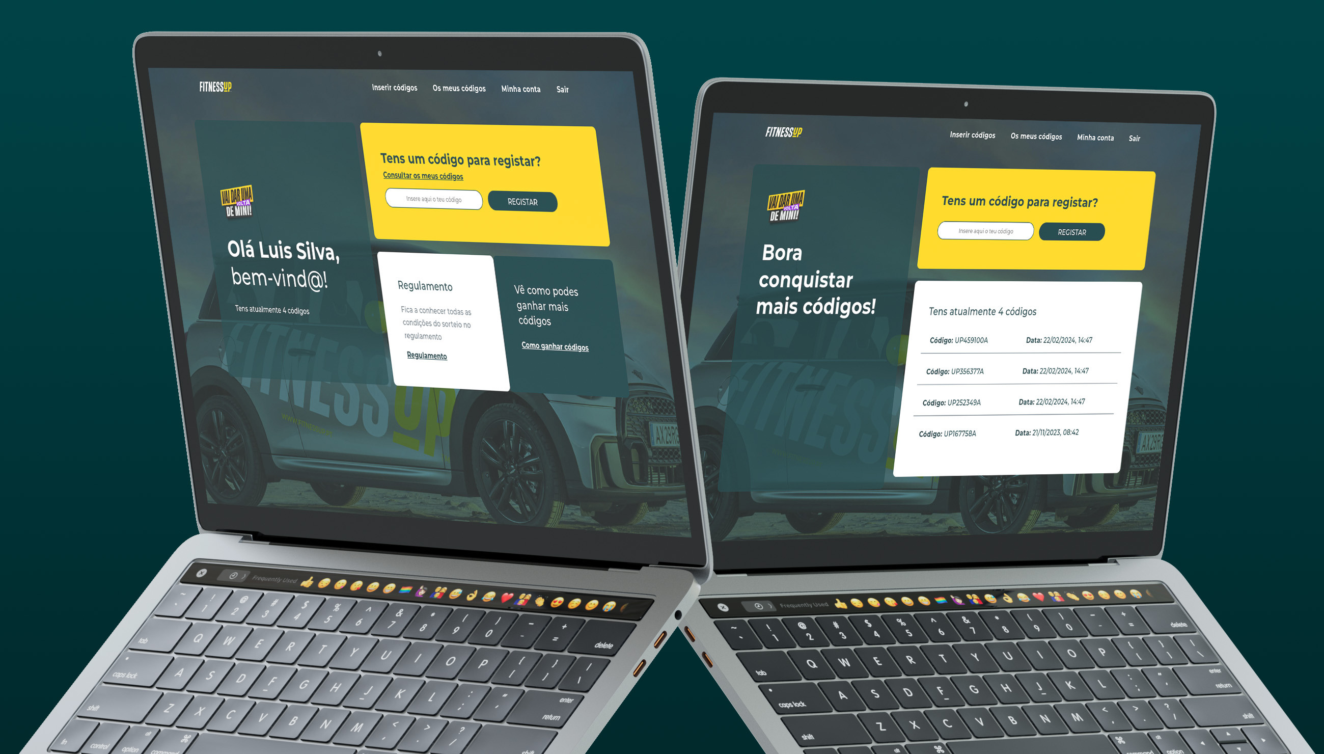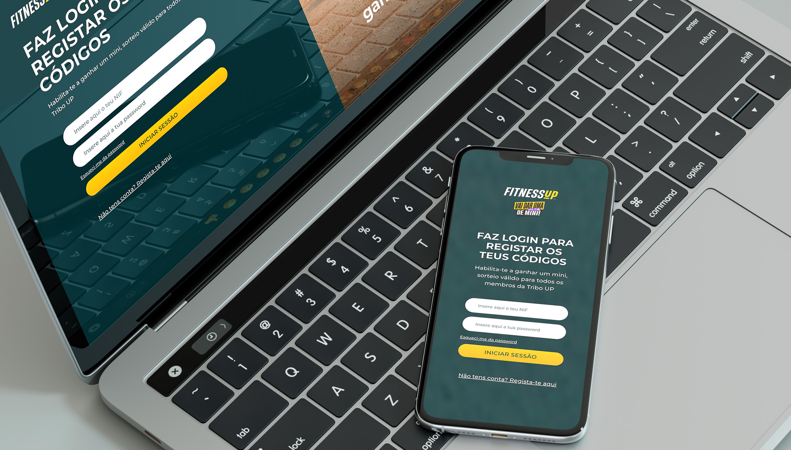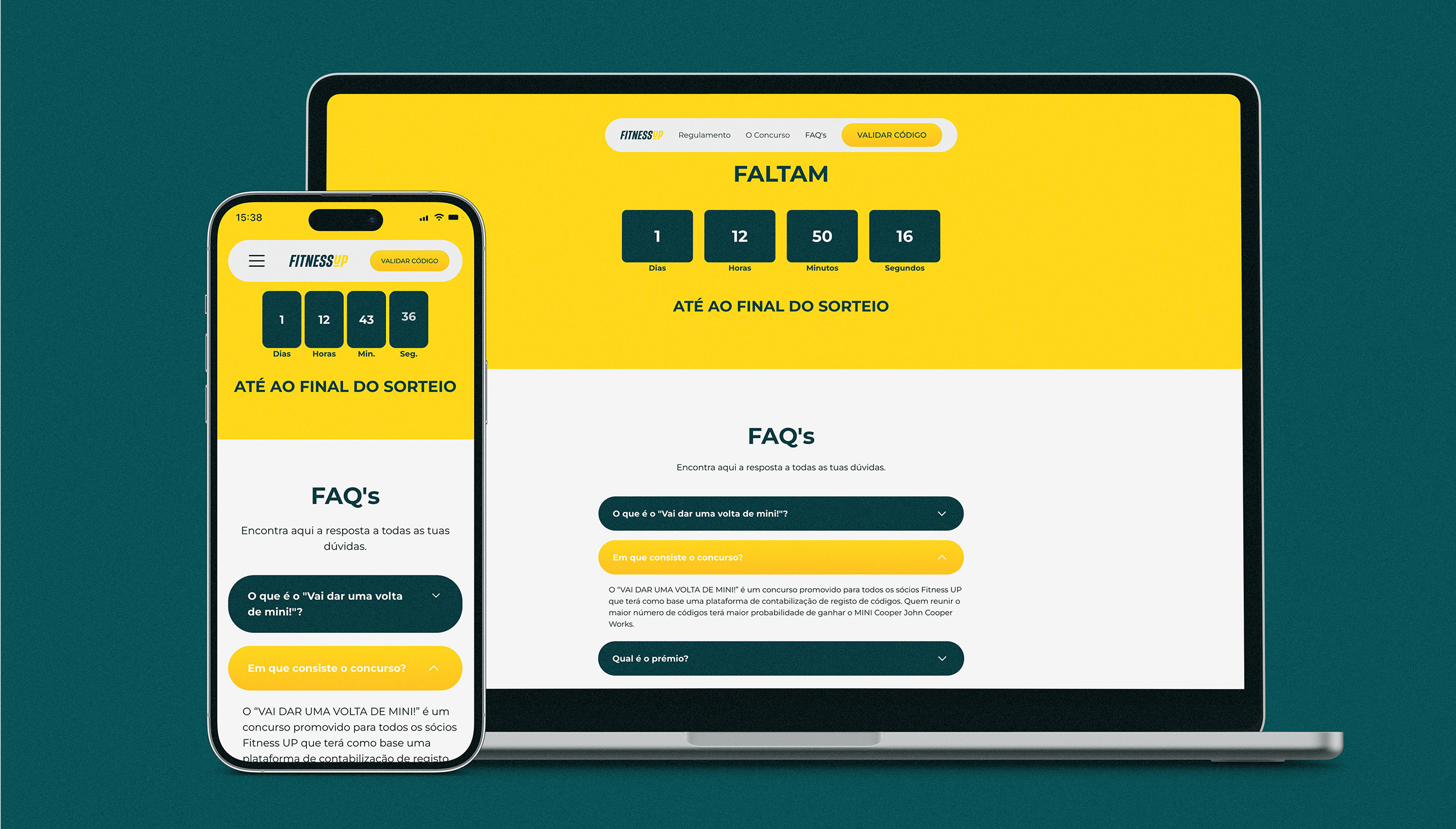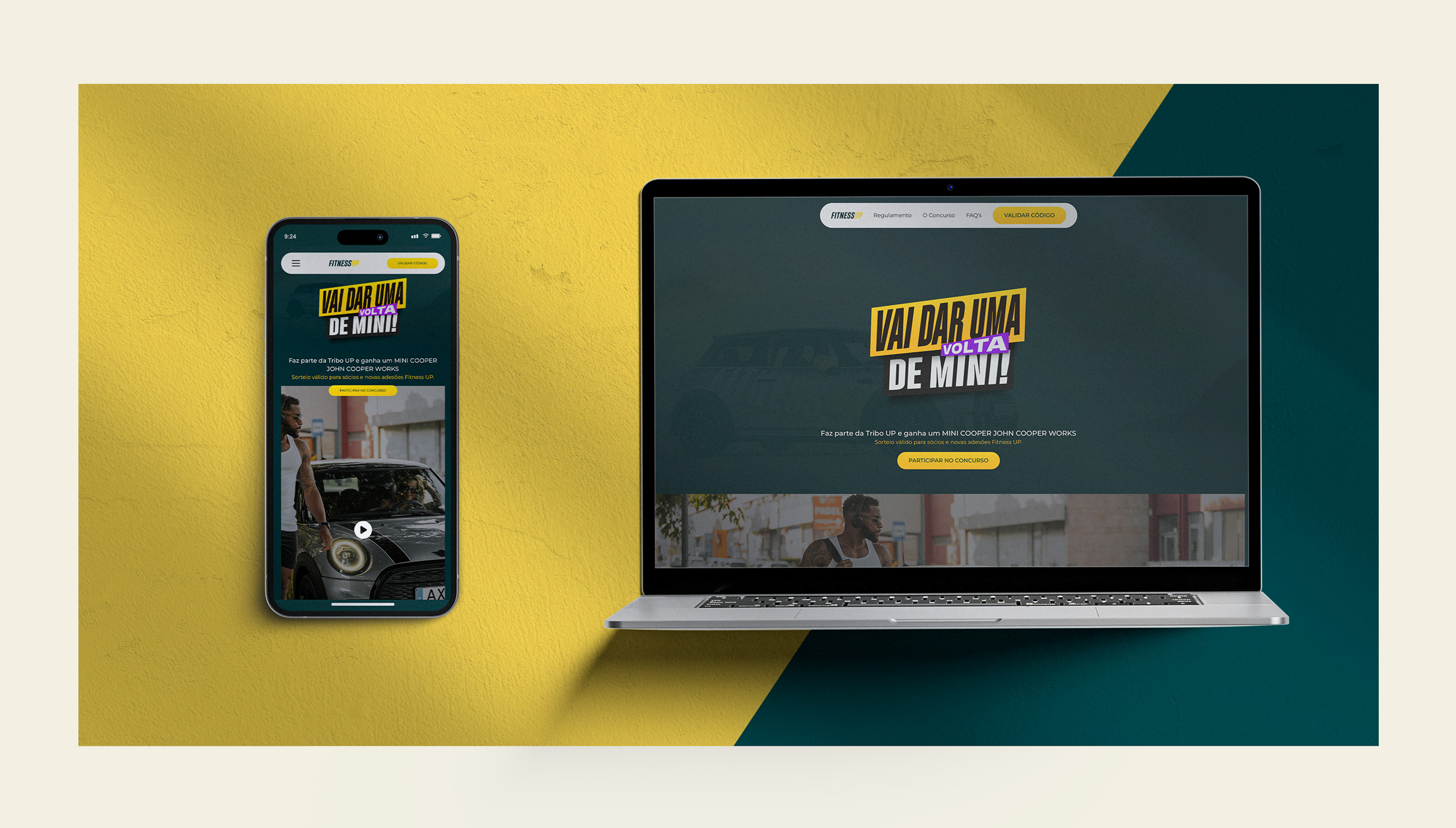 Para que o concurso funcionasse na perfeição, foi necessário desenvolver um website, onde é possível consultar todas as informações relacionadas com o concurso e regulamento. Além disso o website integra uma plataforma com o sistema de clientes do Fitness Up, permitindo a associação automática do concurso às fichas de cliente e a atribuição de códigos de forma simplificada. Através de login, estes podem validar e conferir os códigos obrigatórios para concorrer, disponível em www.vaidarumavoltademini.pt .
