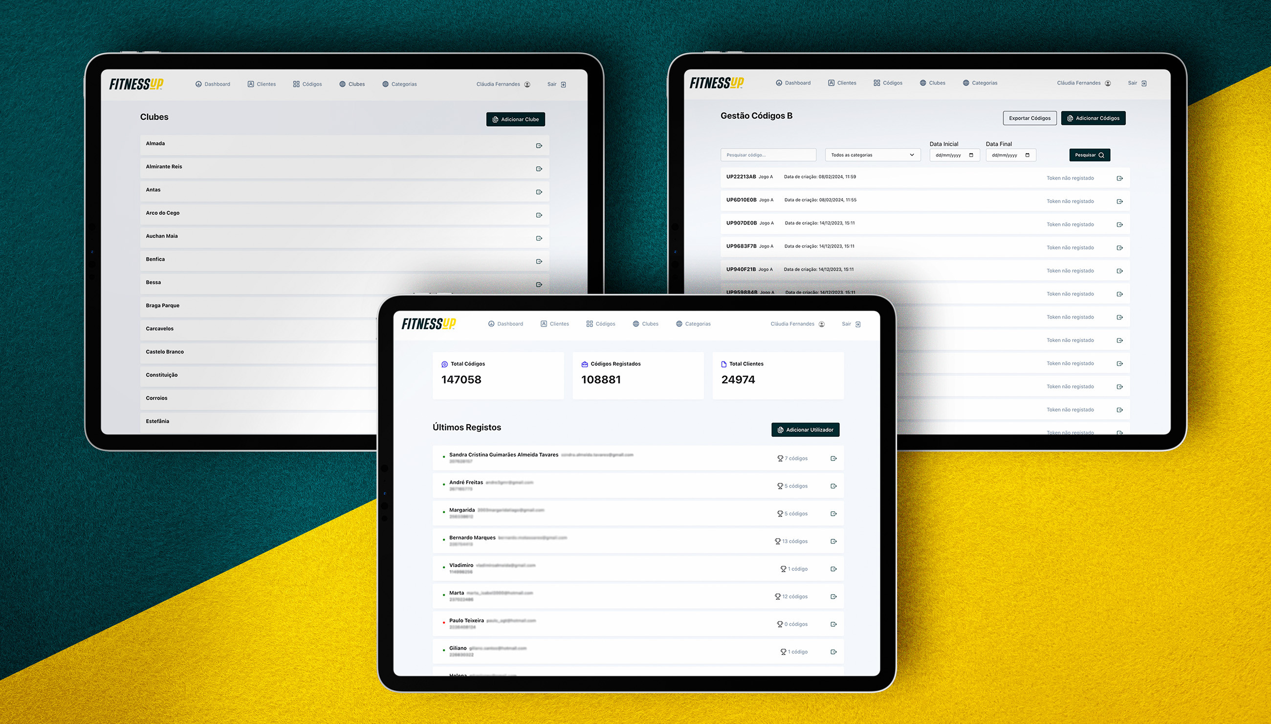 Para além disso, desenvolvemos um backoffice para o Fitness Up, fornecendo ferramentas para gerar novos códigos, analisar estatísticas do concurso e monitorizar o desempenho de todos os participantes.